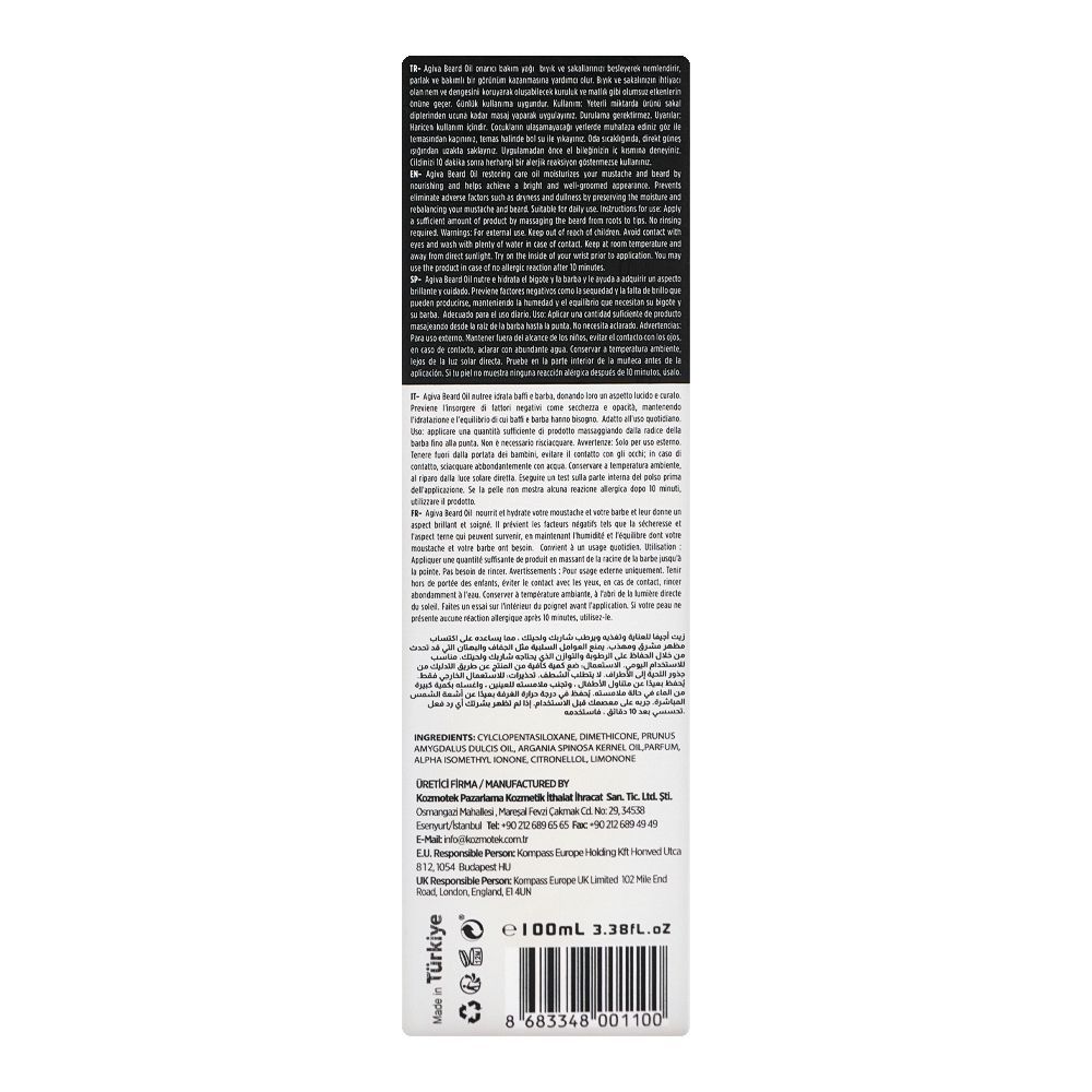 Revitalize your beard and mustache with Agiva Professional Moustache & Beard Oil. This quick-absorbing formula nourishes and softens facial hair, promoting healthy growth while eliminating itch and irritation. Add a natural shine and maintain a well-groomed look with this non-greasy oil, perfect for taming frizz. With 100ml of pure beard and mustache care, grooming becomes effortless and your facial hair stays soft, smooth, and manageable.