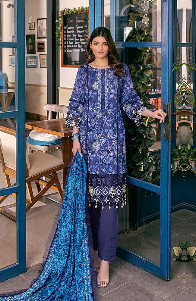 3 Piece Unstitched Embroidered Digital Printed Cotton Satin DressFabric Details:Shirt: Digital Printed Cotton SatinDupatta: Digital Printed LawnTrouser:...