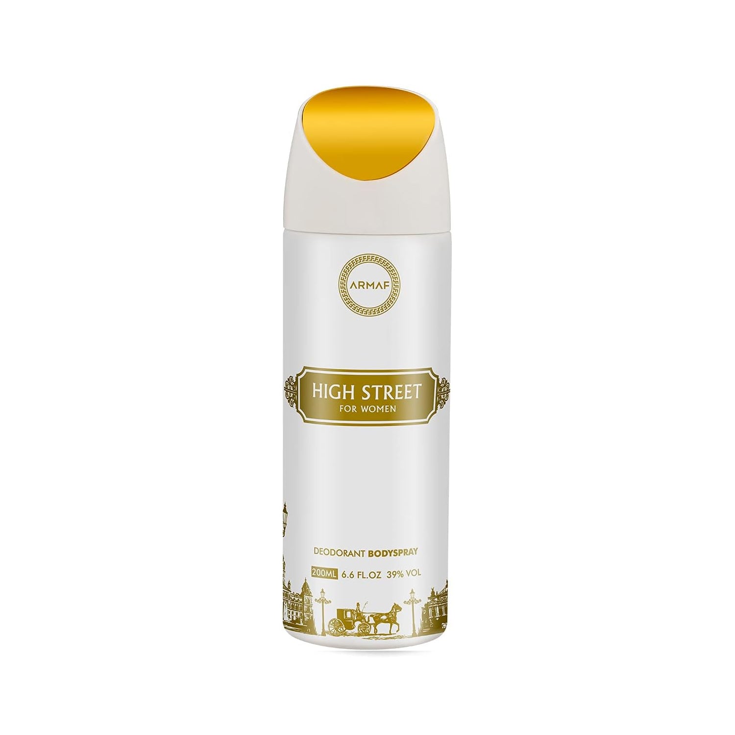 Experience the vintage charm with Armaf High Street Deodorant for Women. Infused with delicate blooms, this fragrance opens with refreshing citrus, followed by Magnolia and Honeysuckle, and finishes with a touch of Raspberry and Cashmere wood, Amber, and Musk. A must-have for the modern woman.