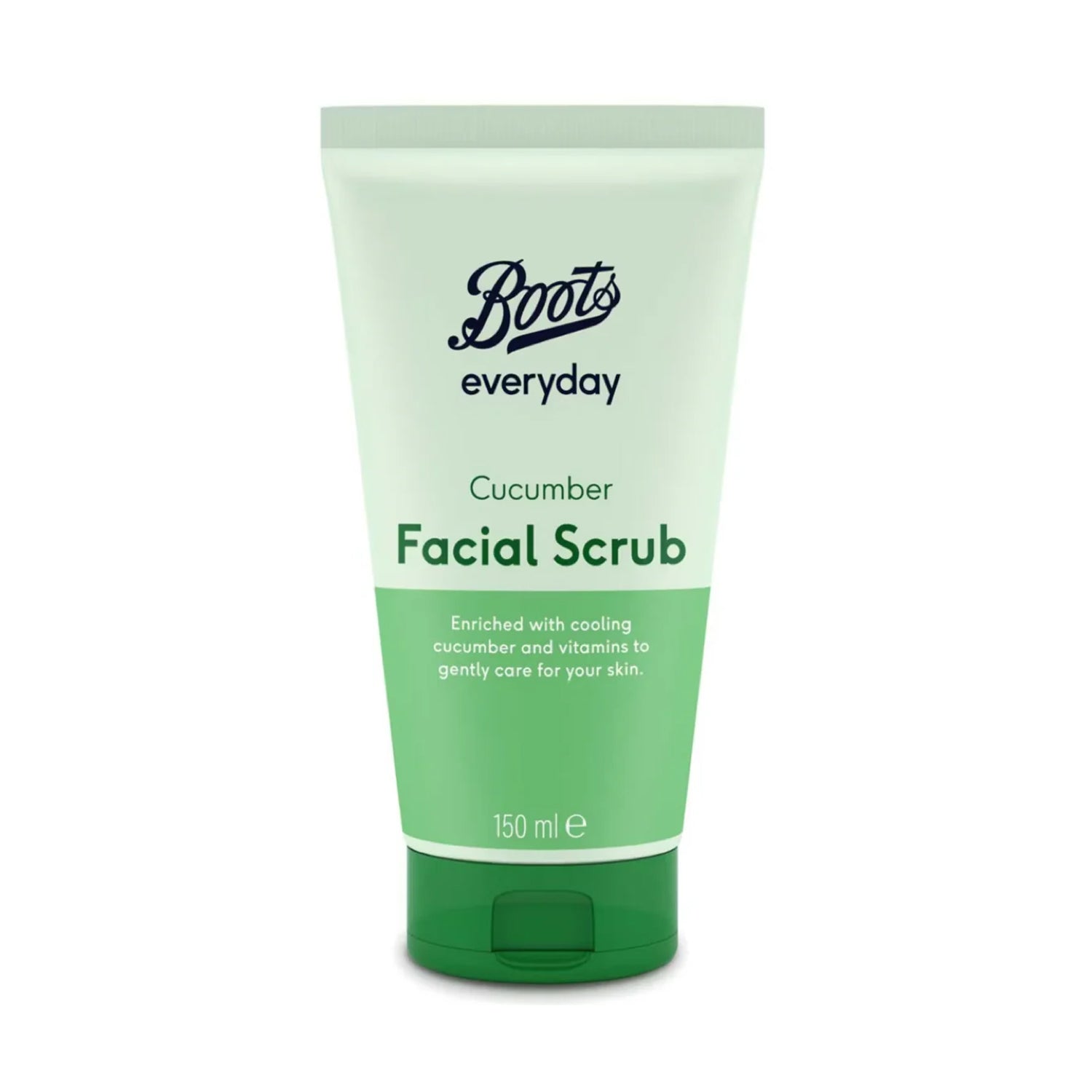 Boots Everyday Cucumber Facial Scrub, enriched with cooling cucumber and vitamins, gently exfoliates to remove dry patches and dead skin cells. Its light, creamy formula revives and brightens the skin, leaving it thoroughly cleansed, refreshed, and soft. Perfect for daily use, this vegan scrub helps reveal smoother, glowing skin while providing a soothing and revitalizing experience.