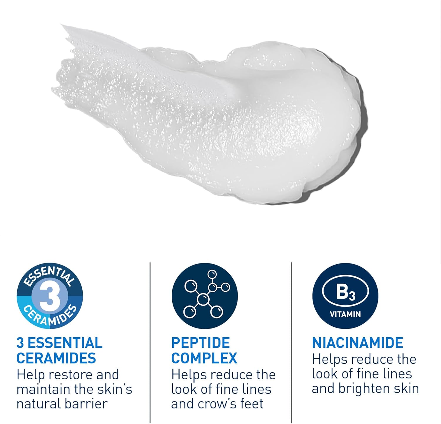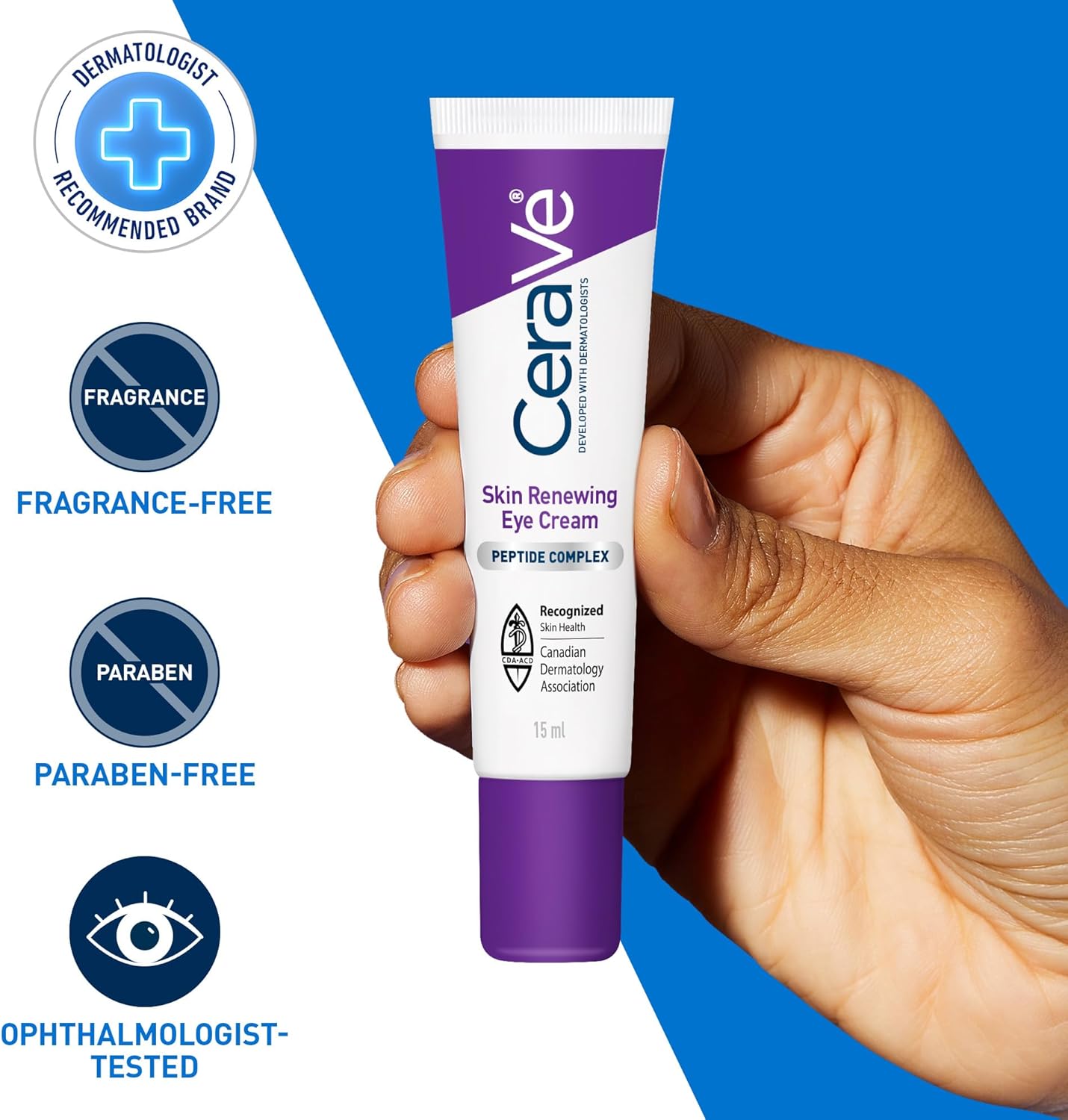 Take a bold step towards younger-looking eyes with CeraVe's Skin Renewing Eye Cream. This anti-aging cream reduces fine lines and crow's feet wrinkles while deeply hydrating the delicate eye area for visibly smoother and healthier skin. Say goodbye to eye bags and dark circles and hello to a rejuvenated appearance.