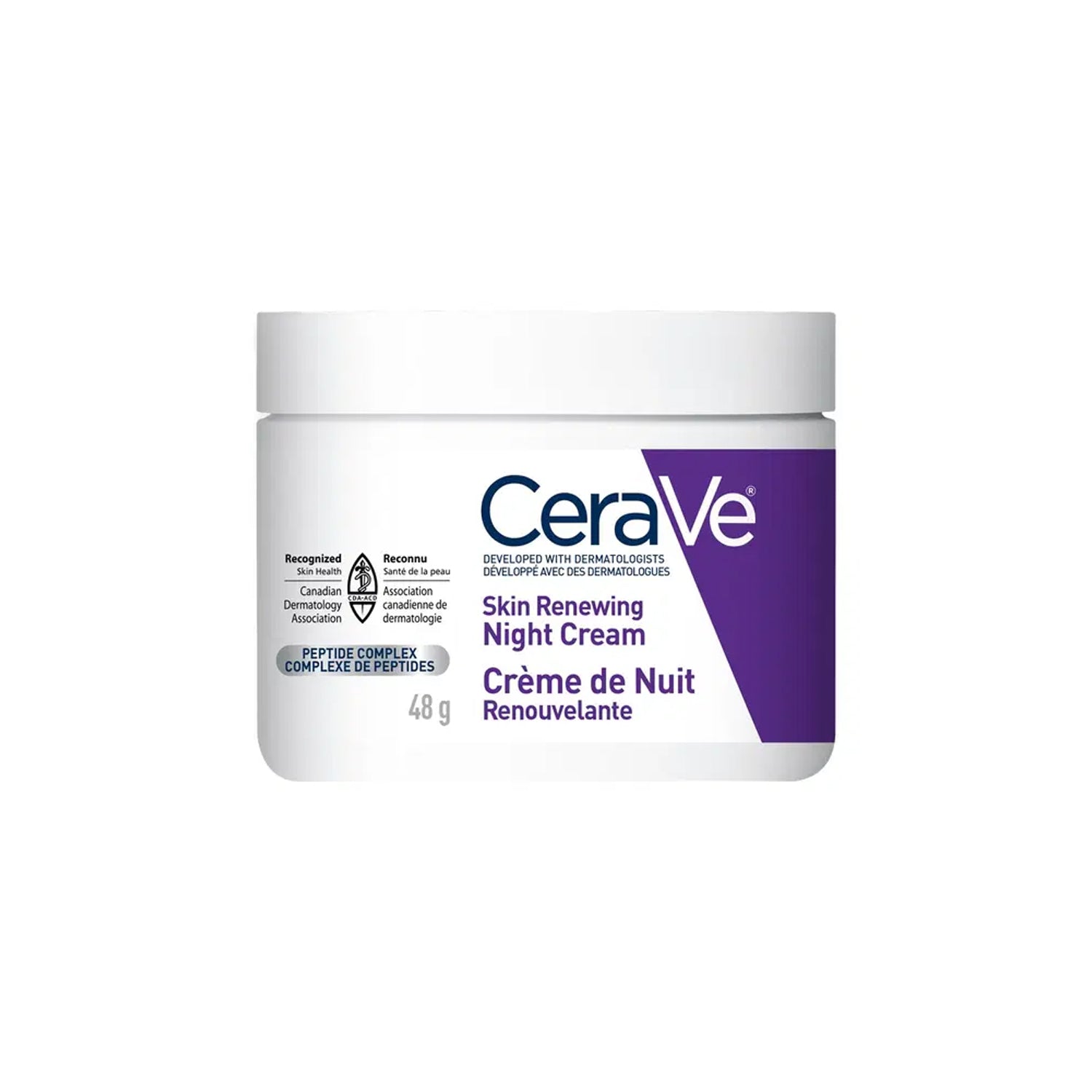 Cera Ve Skin Renewing Night Cream is a dermatologist-developed formula that refreshes and hydrates skin overnight. With Biomimetic Peptides, Hyaluronic Acid, Ceramides, and Niacinamide, it reduces the look of fine lines and wrinkles, supports skin elasticity, and calms the skin. The patented MVE Technology provides long-lasting hydration for all skin types.