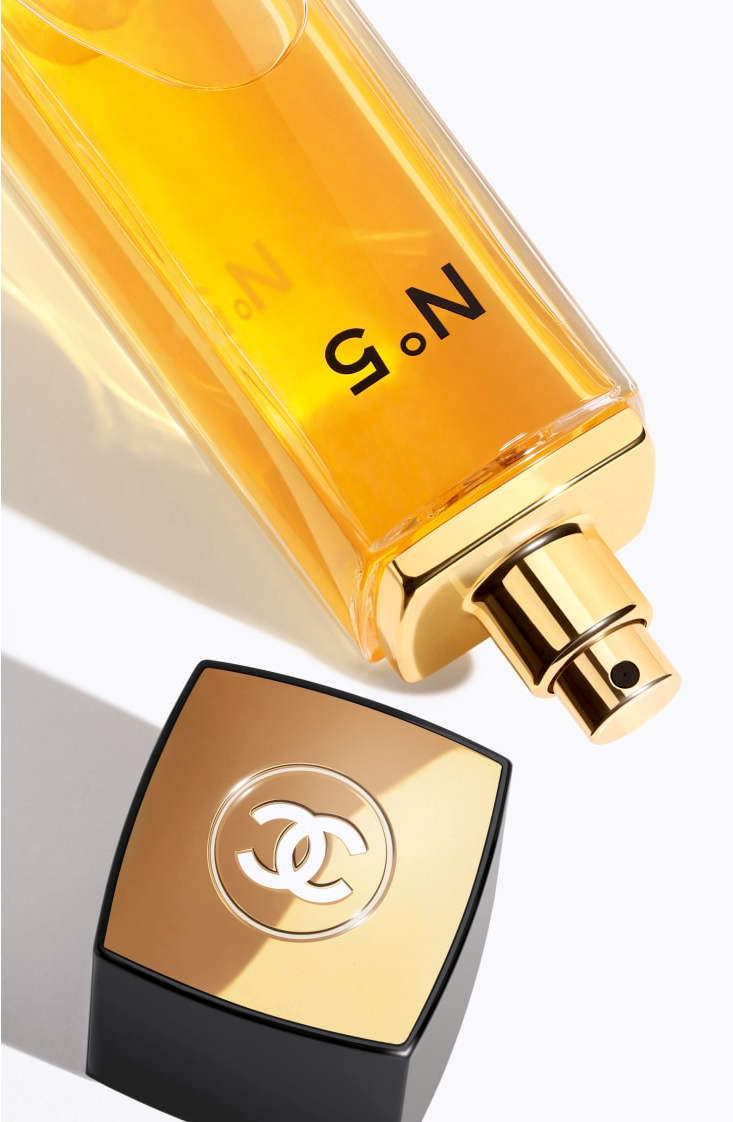 Experience the iconic scent of Chanel N°5 in a new way with the Eau de Toilette version. This warm and bright fragrance is housed in a luxurious spray bottle with a black lacquered cap. Immerse yourself in the fullness of a magnificent floral accord. Perfect for any occasion.