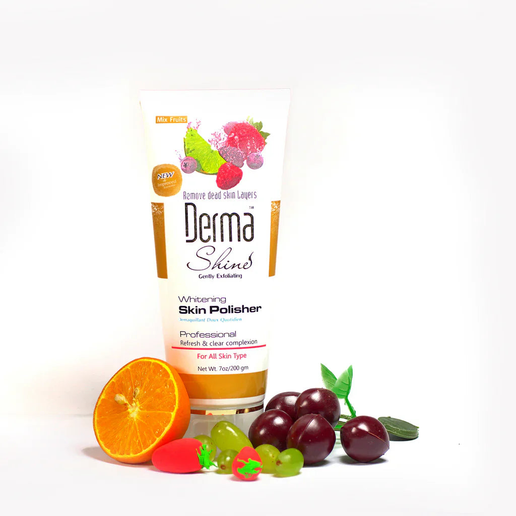 Derma Shine Pure Whitening Skin Polisher is a gentle exfoliating solution that removes dead skin layers, revealing brighter and smoother skin. It helps to eliminate dark spots and lighten skin tone, making it suitable for all skin types. This daily use brightening skin polisher is formulated by professionals for the ultimate skin rejuvenation.