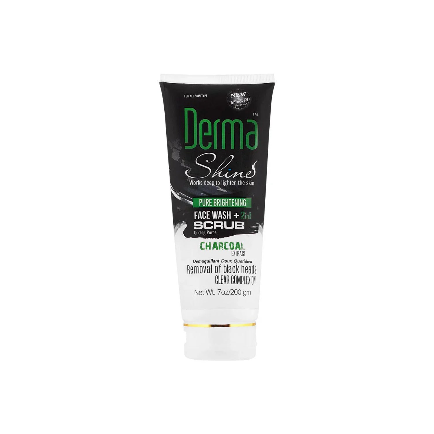 Try Derma Shine's powerful Pure Whitening Charcoal Extract 2-In-1 Face Wash + Scrub, perfect for achieving a bright, radiant complexion. Combining the benefits of activated charcoal and exfoliating scrub, this 200g product deeply cleanses and purifies for a clear and healthy glow.