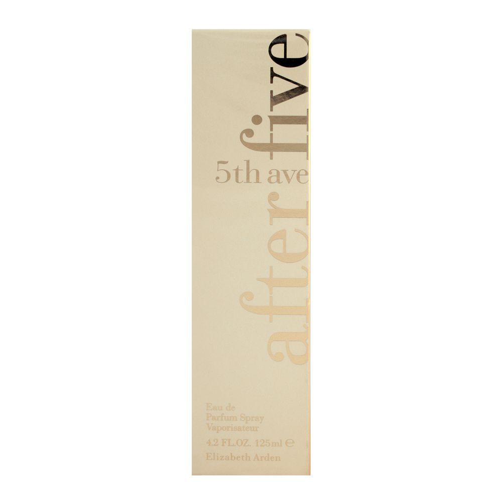 Elevate your evening scent with Elizabeth Arden's Fifth Avenue After Five Eau de Parfum, a sophisticated fragrance crafted for modern women. It opens with vibrant top notes of black plum, honeysuckle, bergamot, and coriander, making a bold first impression. The heart features a floral yet exotic blend of jasmine sambac, saffron, lotus blossom, and muguet. The fragrance settles into a sensual base of musk, white birch, tonka, and sandalwood, leaving a lasting trail. Housed in a sleek, luxurious bottle, it’s the perfect choice for women who appreciate floral warmth and urban sophistication.