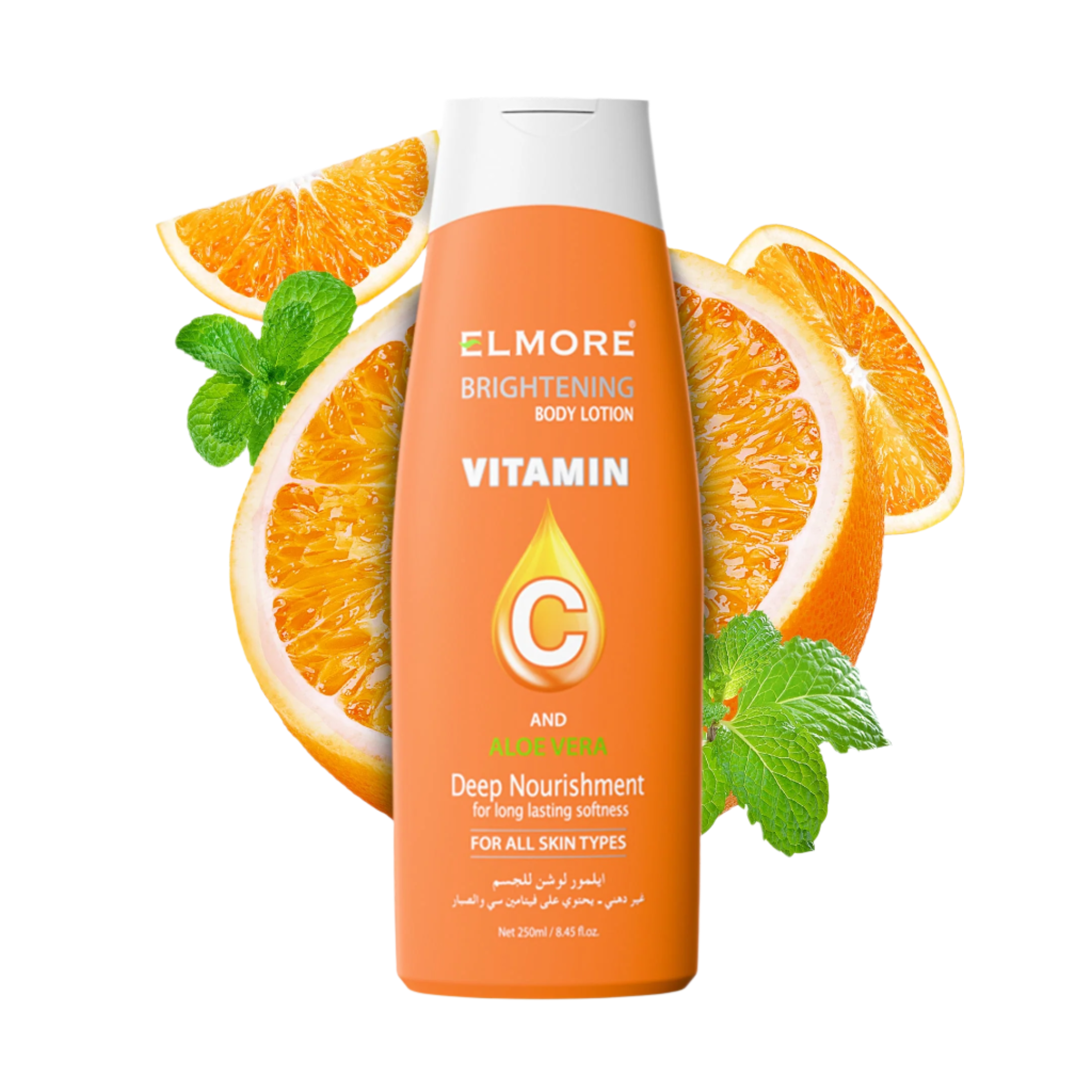 Unleash luminous skin with Elmore Vitamin-C Body Lotion, formulated to deliver deep hydration and a radiant glow. Infused with powerful Vitamin-C, it brightens dull skin, boosts collagen, and restores natural smoothness. This fast-absorbing, non-greasy lotion revives tired, dry skin for a fresh, youthful look. Ideal for daily use, it keeps your skin soft, supple, and visibly glowing. The perfect solution for healthy, nourished, and even-toned skin.
