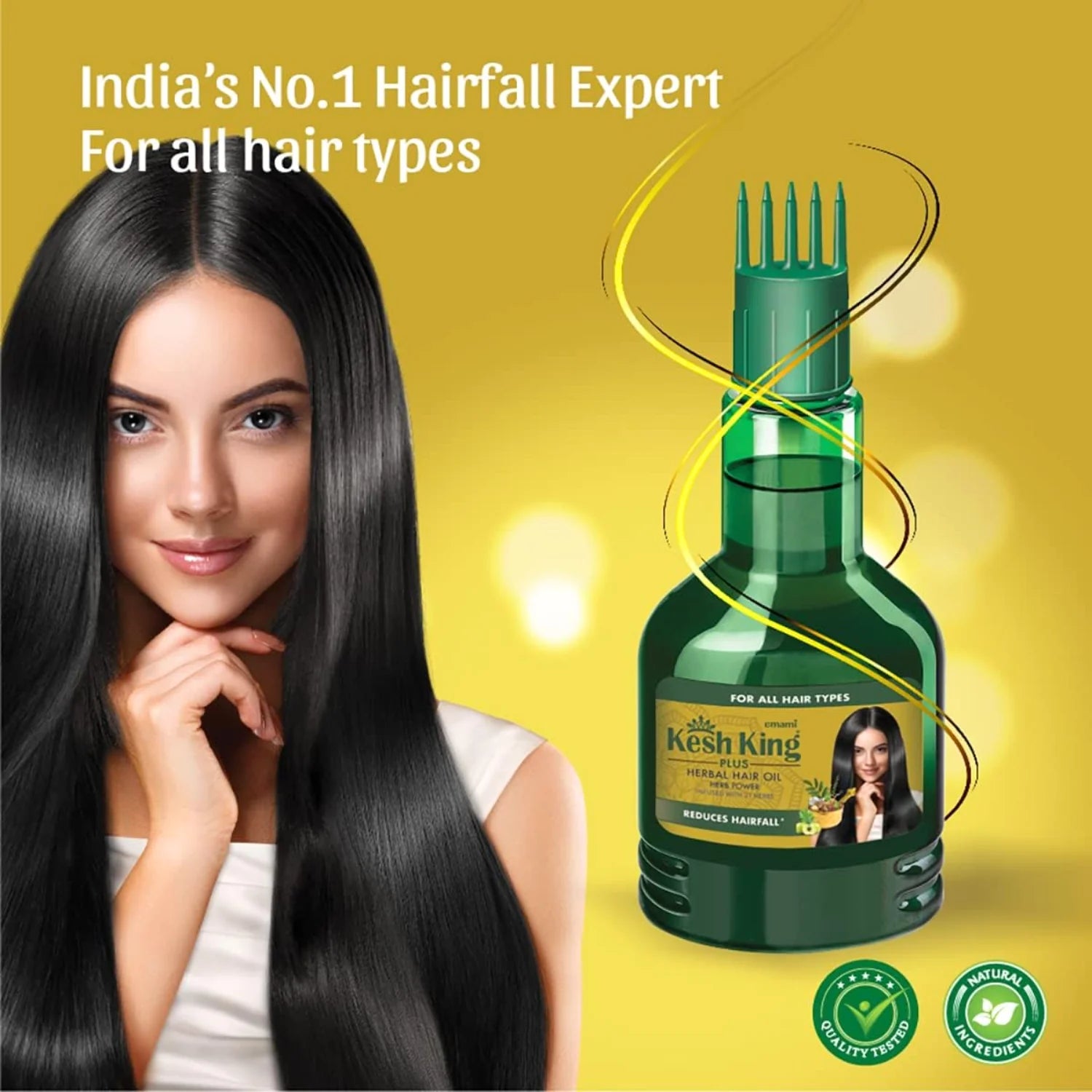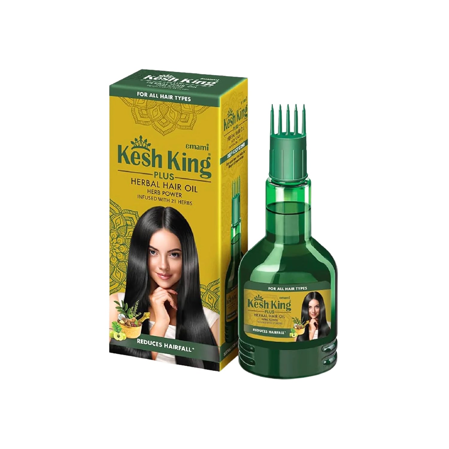 Emami Kesh King Plus 21 Herbs Hair Oil (100ml) has the power to revitalize and nourish hair, improve hair luster and shine, provide a silky sheen to your hair and nourish the scalp while also protecting it from dryness. It comes with a revolutionary deep root comb that helps enhance microcirculation on the scalp and allows targeted oil application.