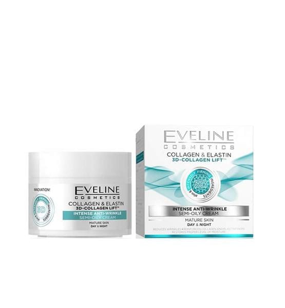 Eveline 3D-Collagen Lift Intense Anti-Wrinkle Day & Night Cream is specially formulated to reduce wrinkles and provide deep moisturizing effects. This powerful cream works both day and night, enhancing skin elasticity and promoting a youthful appearance. Perfect for all skin types, it helps restore smoothness, firmness, and radiance, offering effective anti-aging care. Achieve visibly younger, healthier-looking skin with this must-have cream.