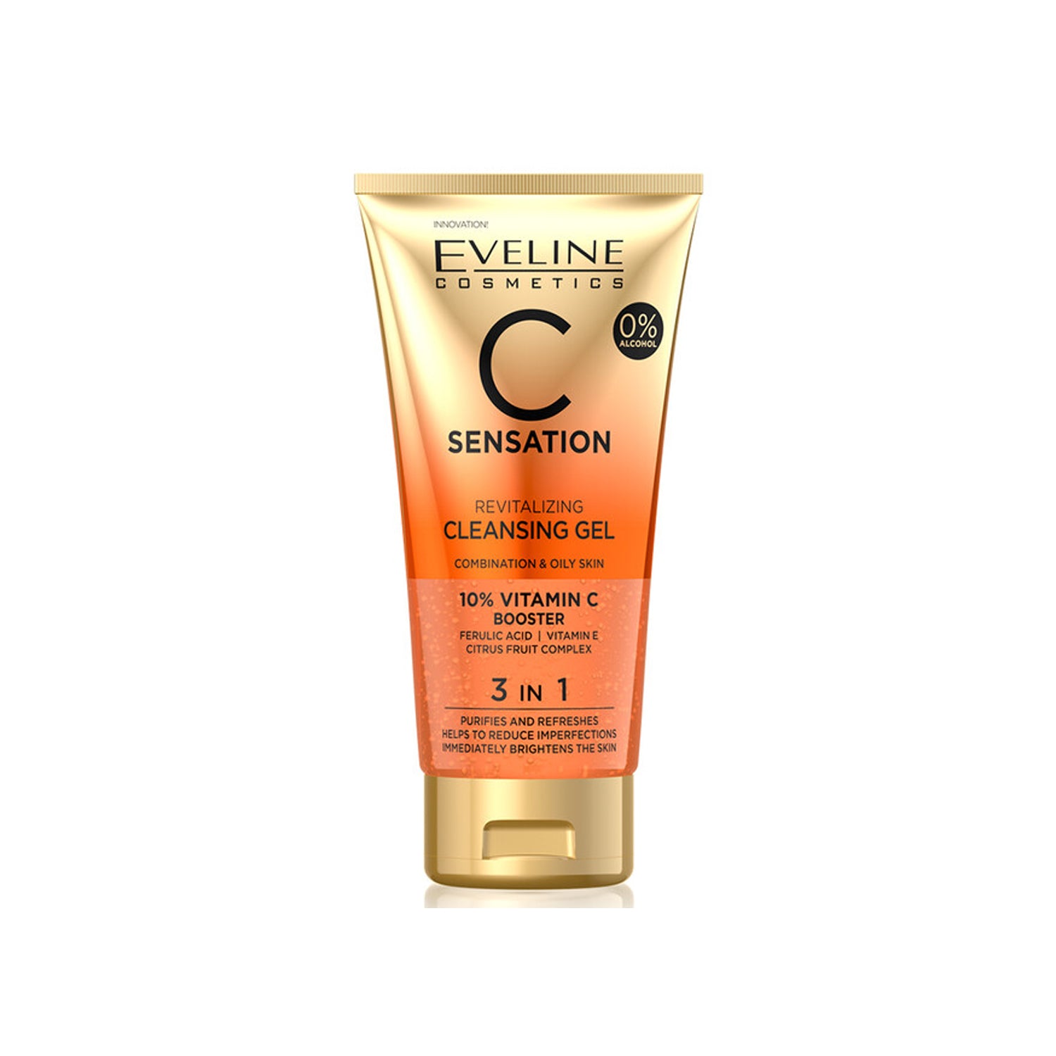Eveline's C Sensation Revitalizing Cleansing Gel is ideal for mixed skin types, with an effective 10% vitamin C, Ferulic acid, and fruit complex. This clean and cool gel helps reduce imperfections and instantly brightens skin. With powerful active ingredients, it promotes a radiant complexion and restores skin's natural glow and tightness.