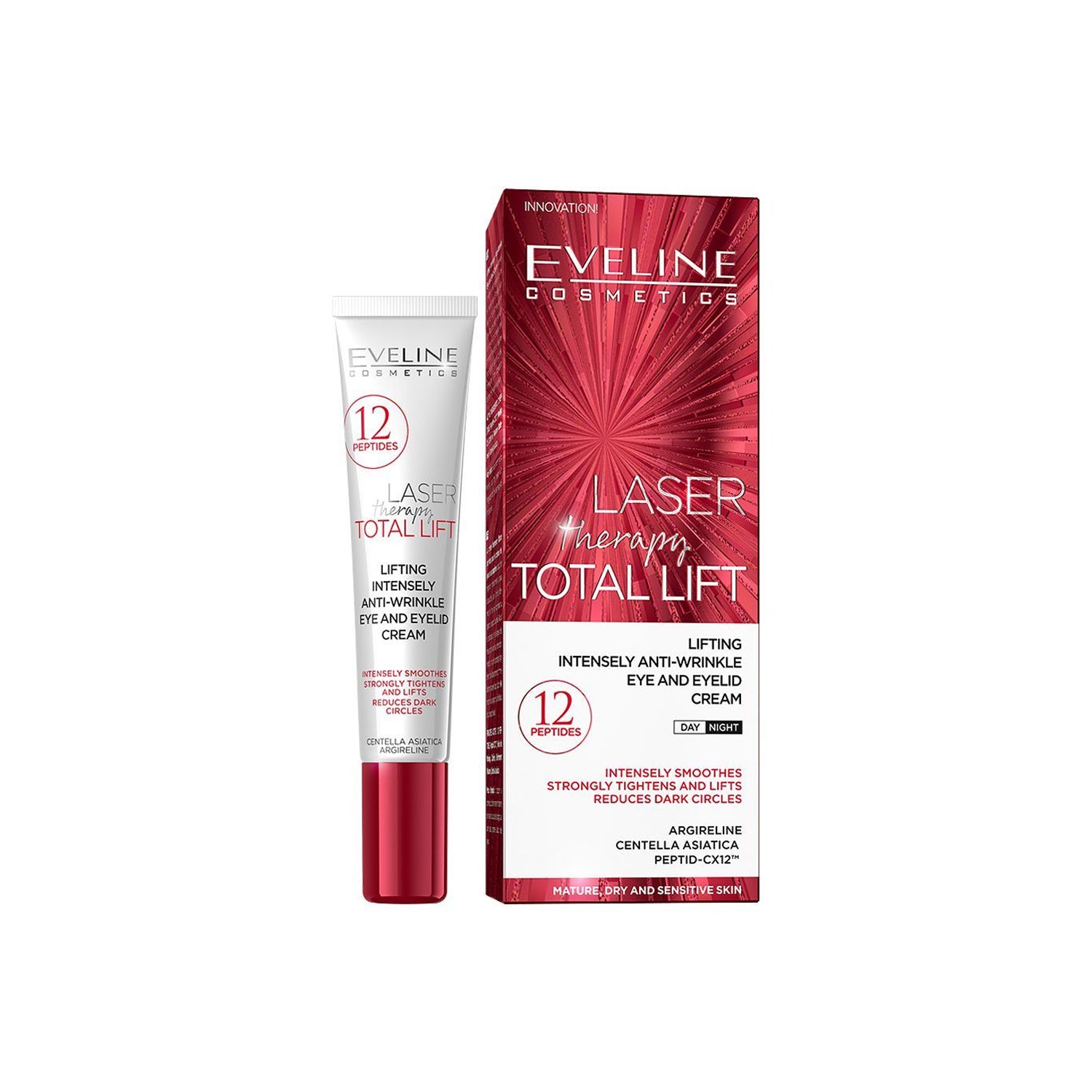 Lifting Intensely Anti-Wrinkle Eye and Eyelid Cream intensely soothes and regenerates the skin around eyes. Strongly tightens and lifts, restoring youthful look. Reduces depth and width of wrinkles and prevents their formation. Moisturizes, nourishes and protects against dryness. Immediately after application restores fresh and relaxed look.