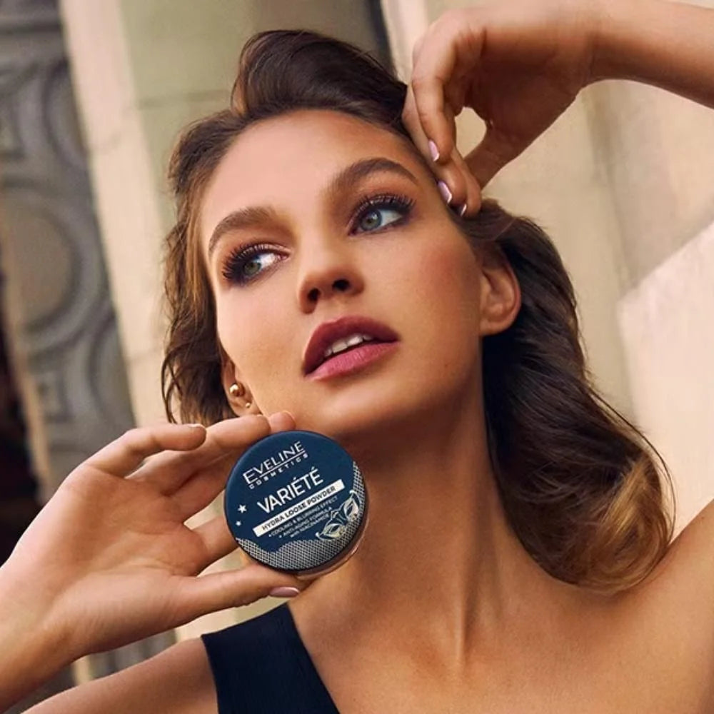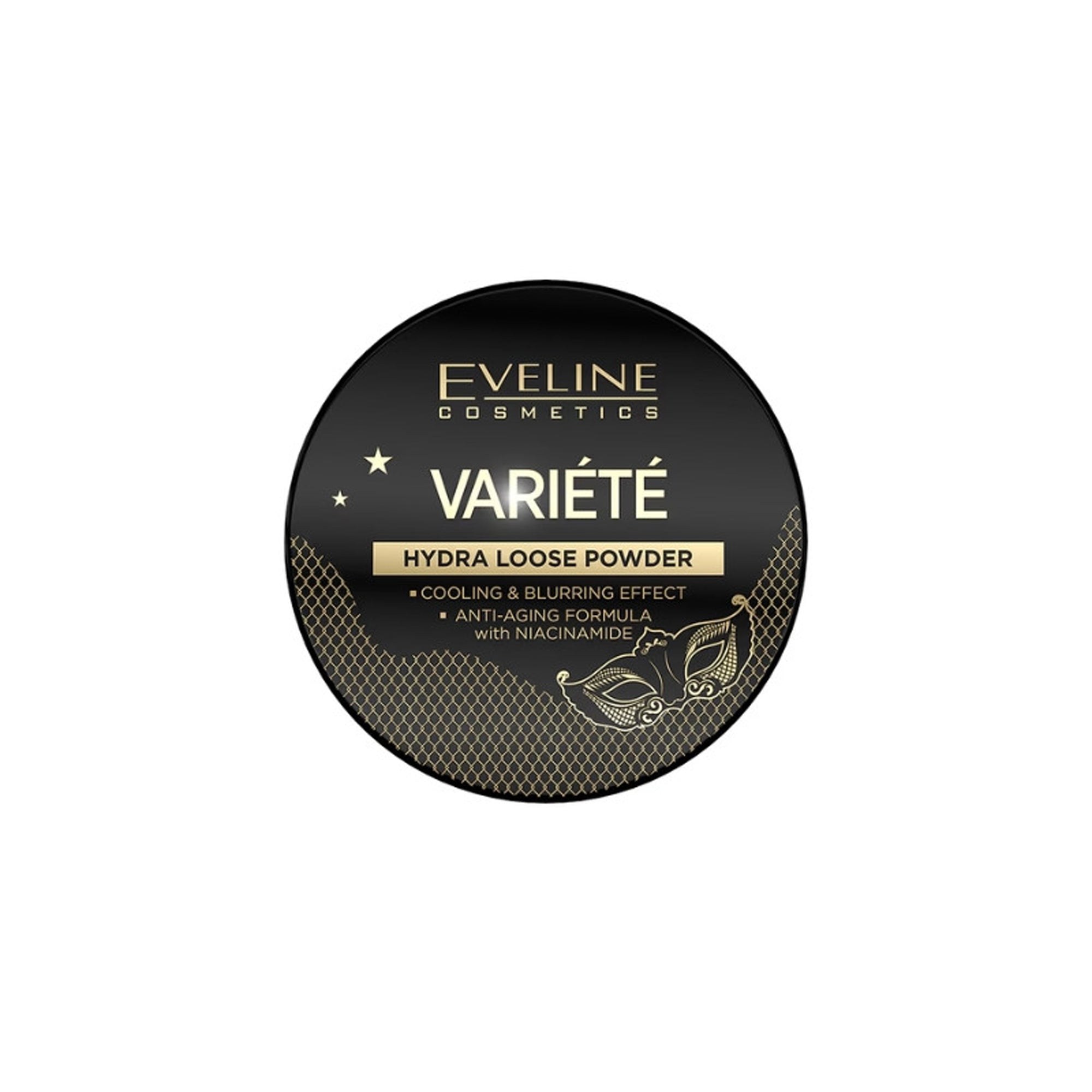 The Eveline Variete Loose Face Powder with Cooling Effect is designed to refresh and moisturize the skin while providing a flawless, youthful look. Enriched with water, this powder offers a unique cooling effect upon application, soothing and hydrating the skin. Its formula includes hyaluronic acid and niacinamide to reduce existing wrinkles and prevent new ones.