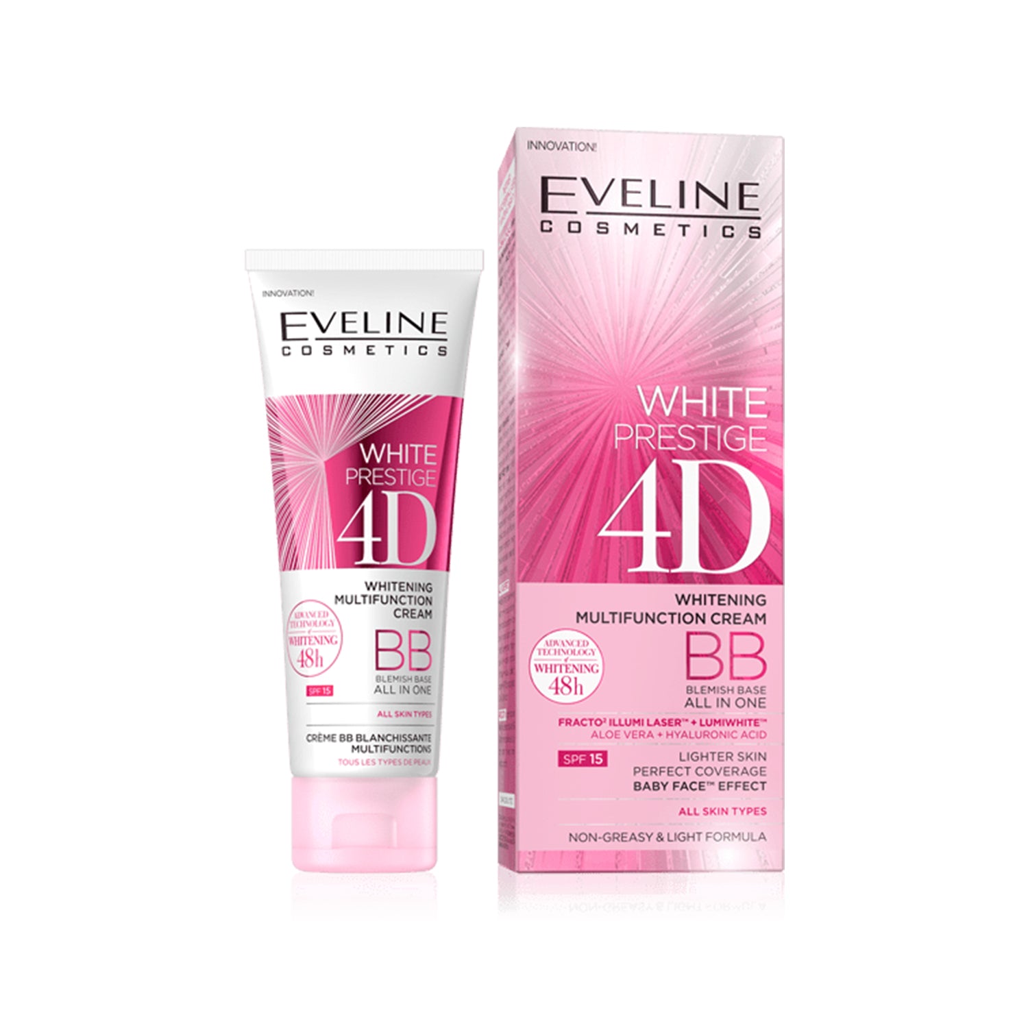 Eveline's White Prestige BB Multifunction Cream combines a unique whitening complex with innovative active ingredients to instantly brighten, moisturize, and smooth out the complexion. With its velvety texture and ability to conceal imperfections, this cream is a breakthrough in skincare, providing an "all-in-one" effect for a radiant, youthful appearance.