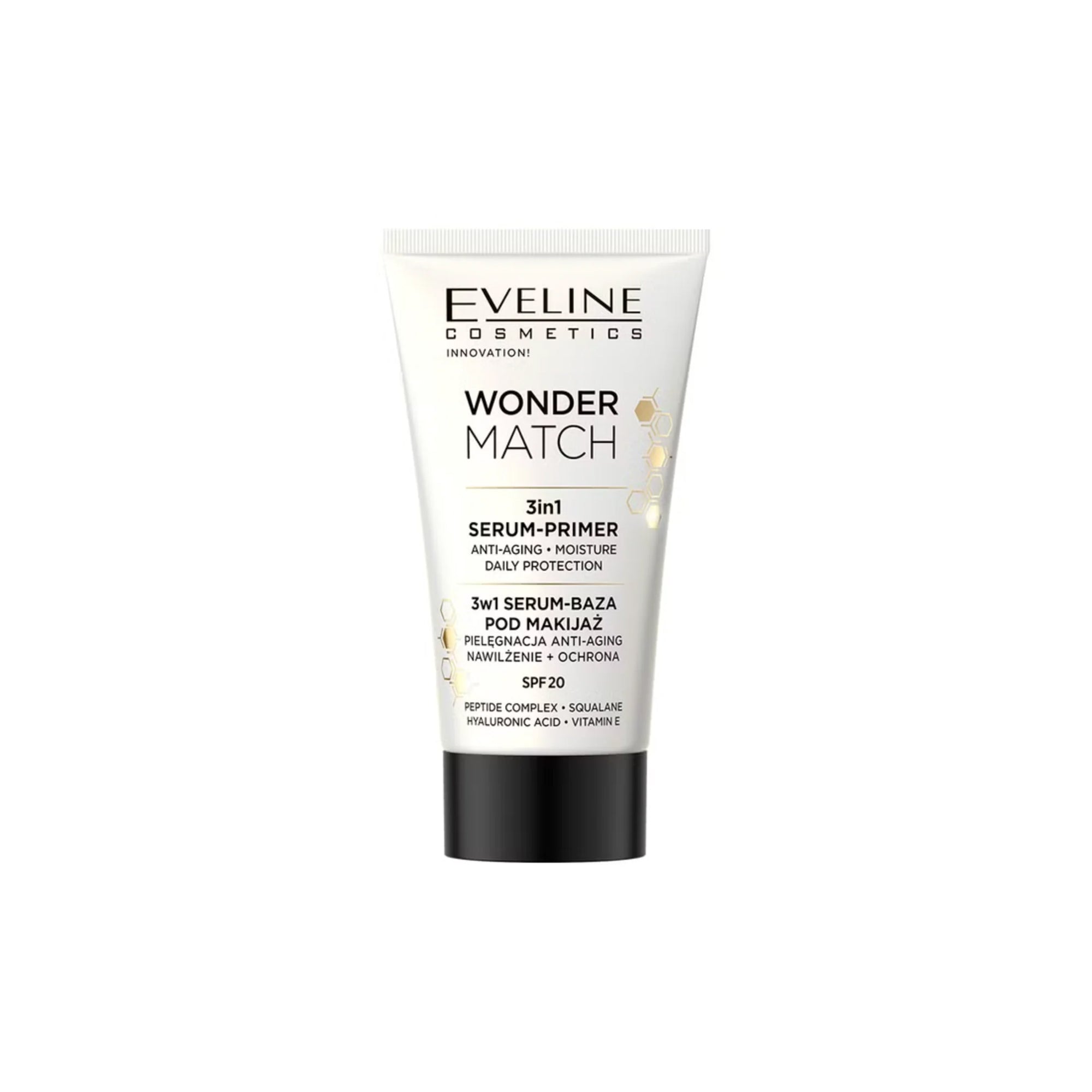 The Eveline Wonder Match 3-in-1 Serum Primer with SPF 20 is your all-in-one solution for flawless skin prep. Acting as a serum, primer, and sunscreen, this multitasking formula hydrates, blurs imperfections, and extends makeup wear while protecting against daily sun damage.