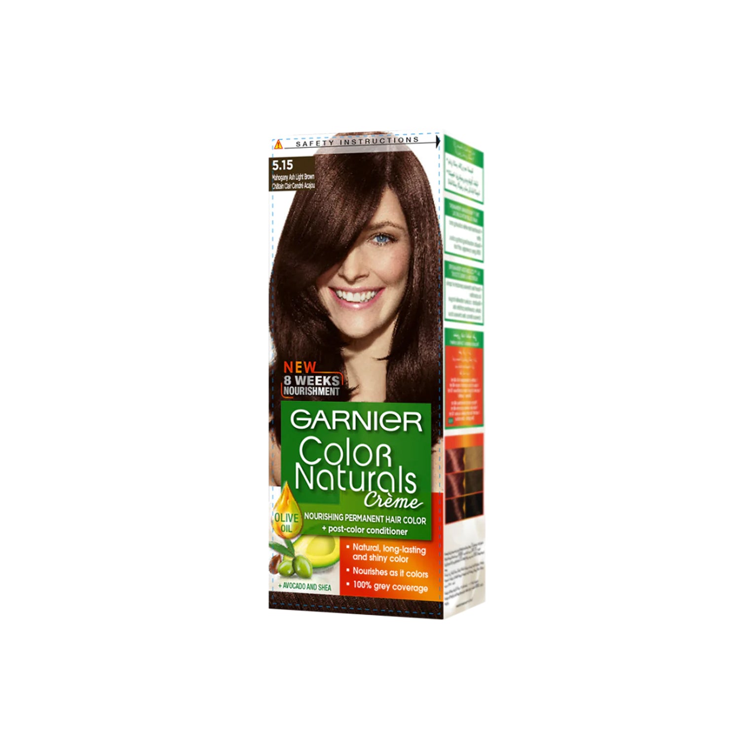 Revitalize your hair with Garnier Color Naturals Creme - 5.15 Rich Chocolate. Enriched with Olive oil, this permanent colour cream nourishes while it colors, providing a richer, more vibrant hue. Plus, the added olive oil in the conditioner creates a luxurious treatment for your hair, leaving it soft and radiant. Say goodbye to grey hair and hello to a bold, beautiful look!
