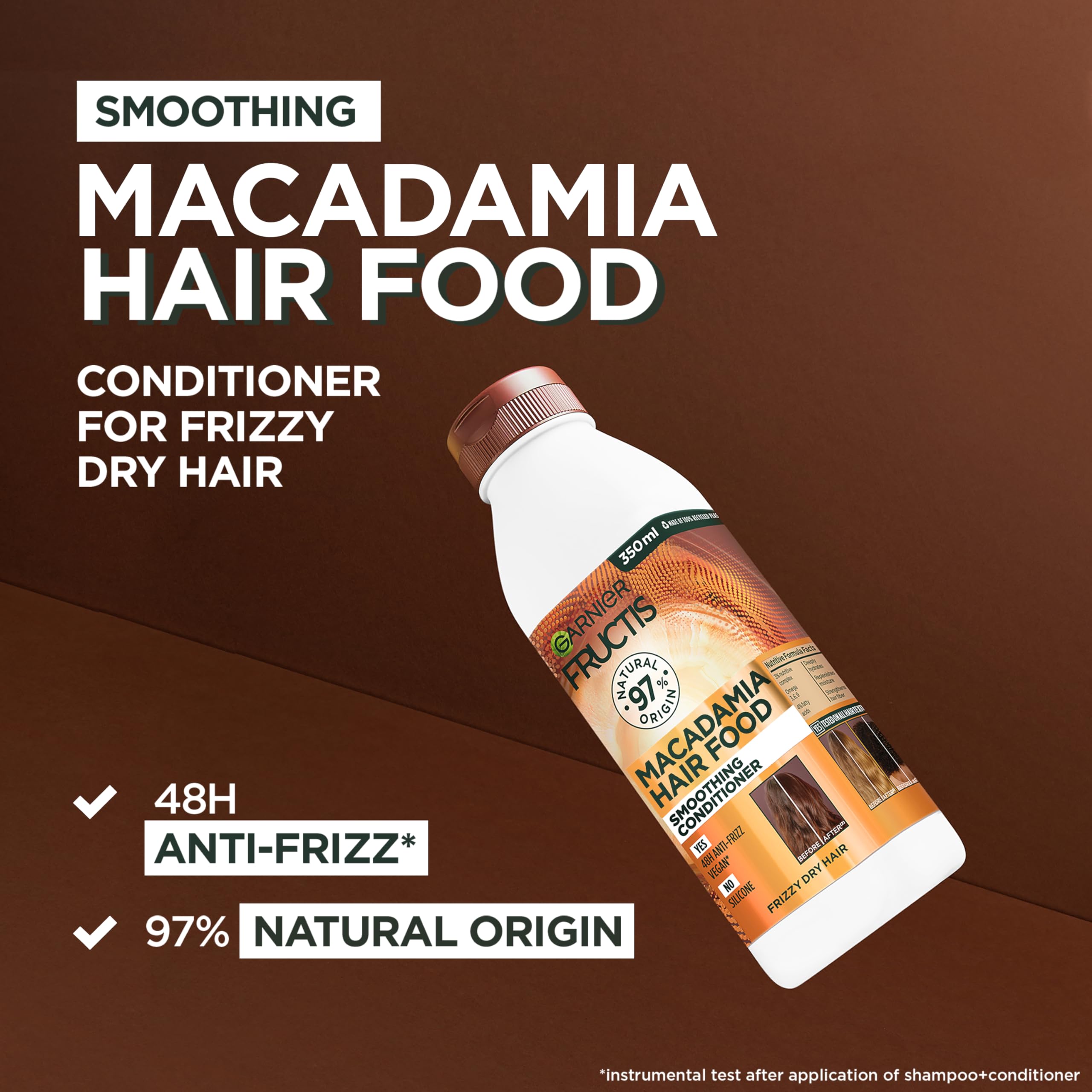 Enhance your haircare routine with Garnier Fructis Hair Food Macadamia Shampoo. This deeply nourishing formula tames dry, unruly hair, leaving it smoother and more manageable. Enriched with macadamia and coconut oils, it restores elasticity and improves texture without weighing hair down. Plus, its silicone-free and vegan formula provides a natural, healthy feel.