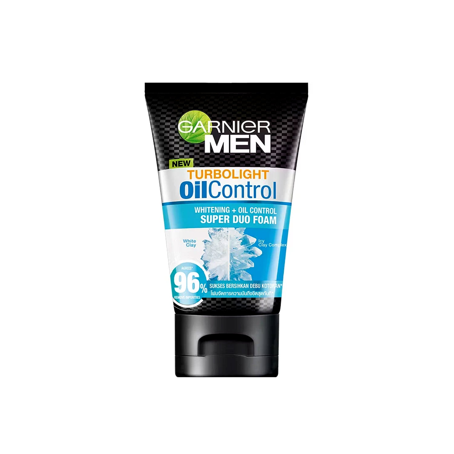 Introducing Garnier Men Duo Foam Turbo Light White Oil Control - 100ml, the perfect solution for oily skin. This innovative foam effectively controls oil production, leaving your skin looking brighter, clearer, and healthier. With its dual-action formula, it cleanses and moisturizes, giving you a refreshed and balanced complexion. Dermatologically tested for the best results.