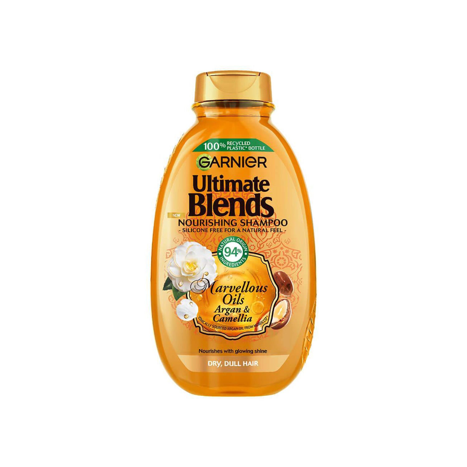 Experience the luxurious nourishing benefits of Garnier Ultimate Blends Argan and Camellia Oil Shampoo. Infused with rich oils, this gentle and mild formula revitalizes all hair types, reducing frizz and protecting from damage. Indulge in healthy, soft hair with a touch of elegance.