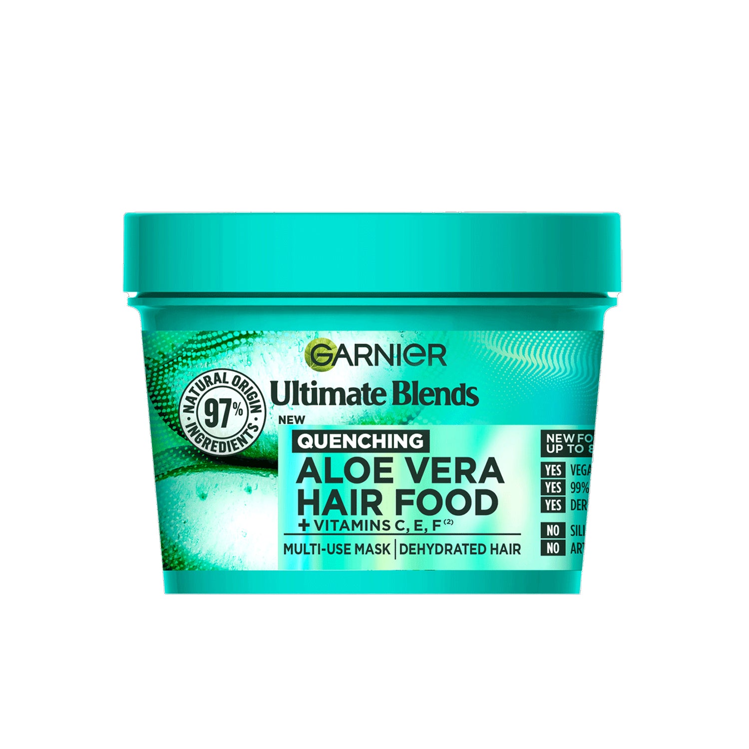 Transform your hangry hair with Garnier Ultimate Blends Aloe Vera Hair Food Mask. Its 3-in-1 formula nourishes and conditions hair, leaving it up to four times shinier. Made with 98% natural ingredients and 100% vegan formula, its super food blend of Aloe Vera and Coconut will revitalize and moisturize your normal to dry hair without weighing it down. Made in Germany.