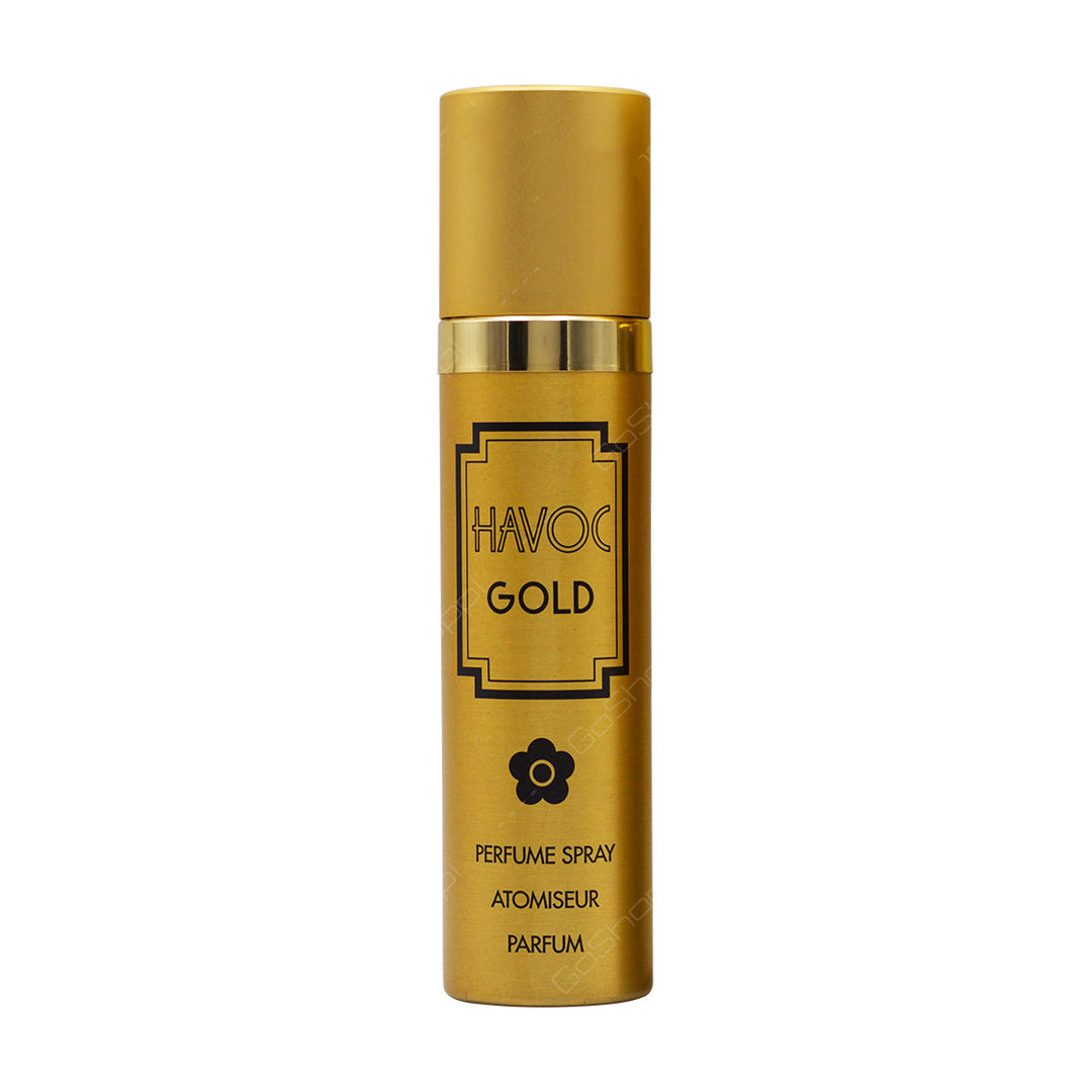 Discover Havoc Gold Perfume Spray for Men, a bold powdery mossy aldehydic chypre with floral crème brûlée and green floracy notes. Perfect for adventurous, confident men. Buy now!