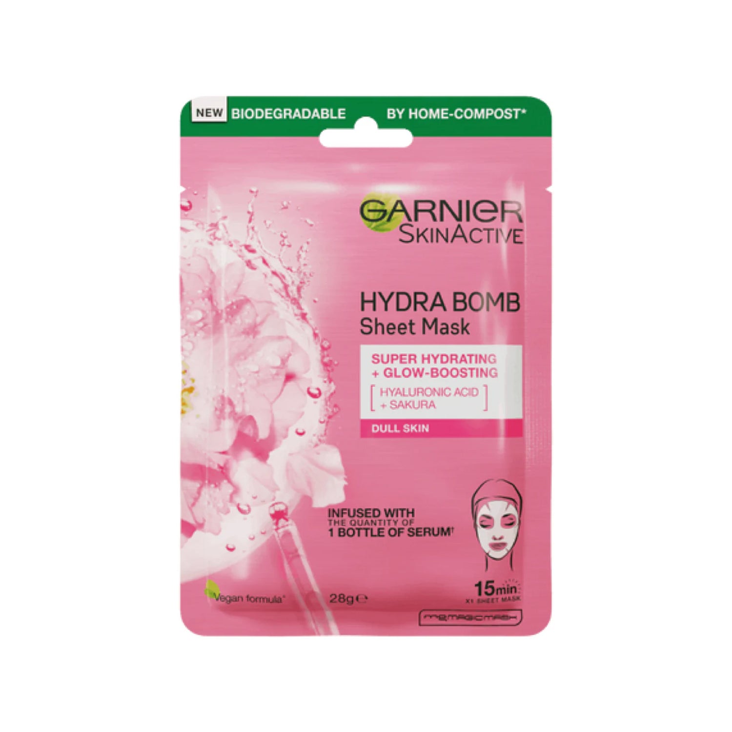 Revitalize and brighten your skin with Garnier's Hydra Bomb Hyaluronic Acid + Sakura Sheet Face Mask. The ultra hydrating formula with Hyaluronic Acid and Sakura extracts boosts dull skin, leaving it with a luminous complexion. Reveal your most hydrated and radiant self with this glow-boosting sheet mask.