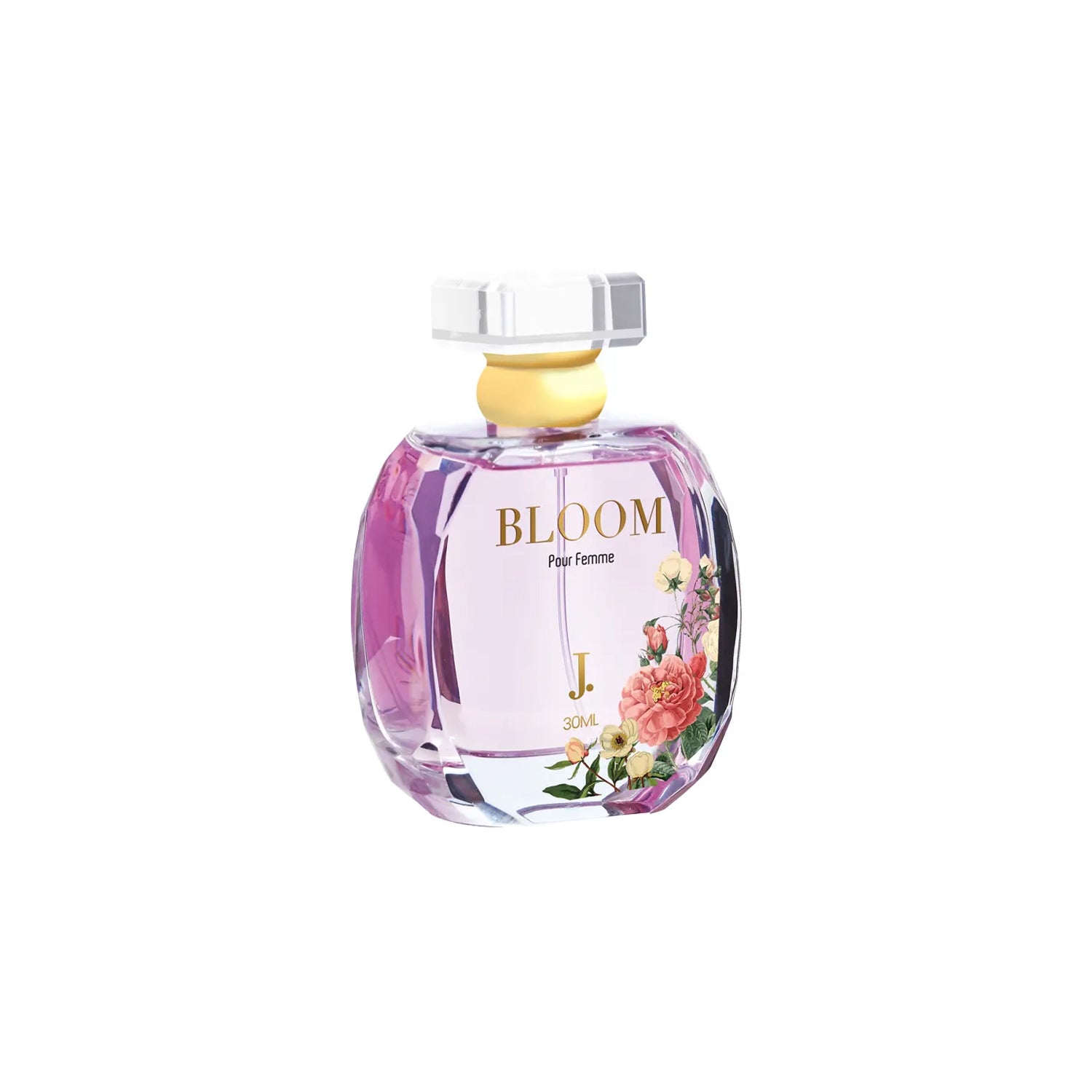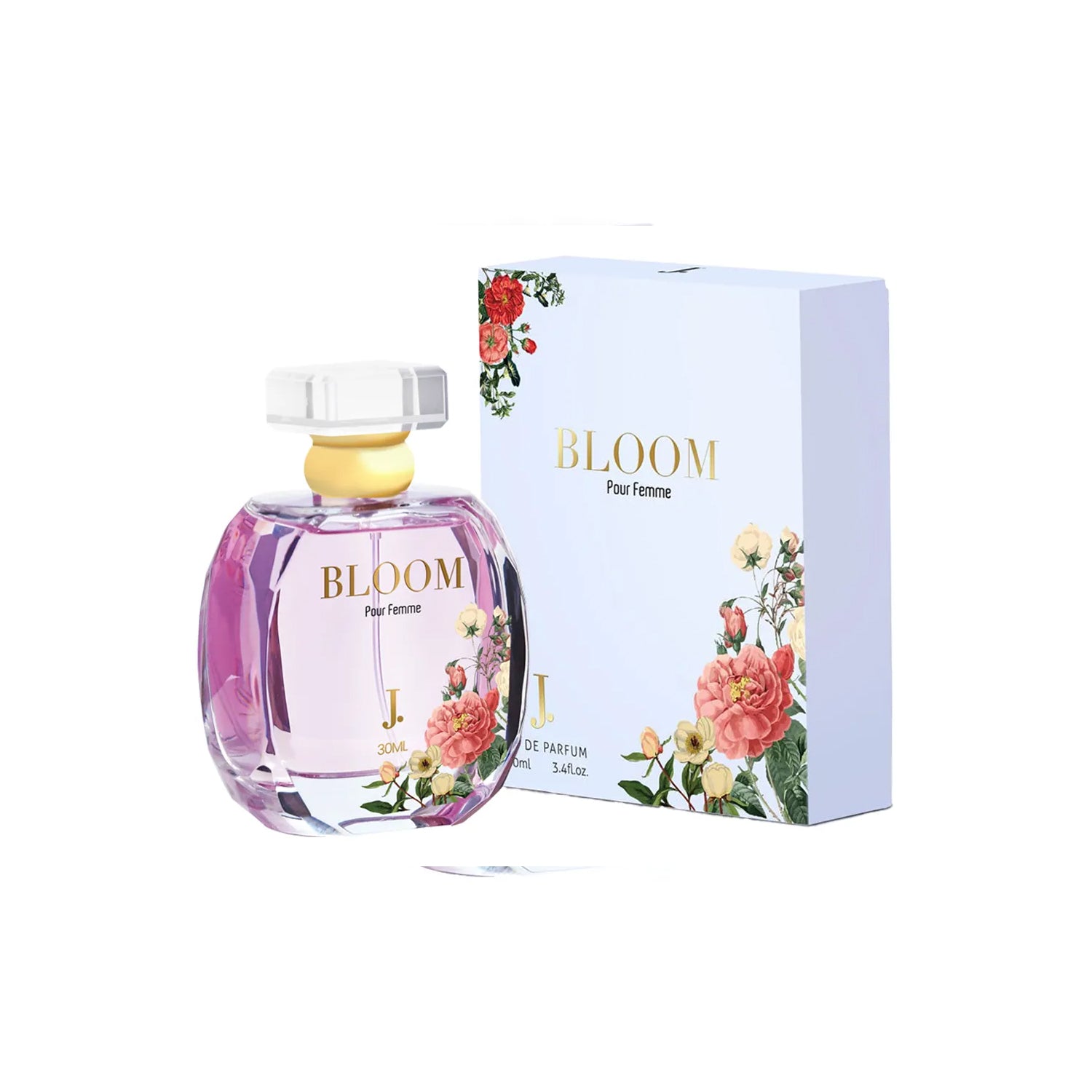 Experience the captivating scent of J. Junaid Jamshed - BLOOM Pour Femme - 30ml. This modish masterpiece features fresh floral musky accords, including citrus, peony, rose, and musk notes. The pink juice radiates gentle freshness and is complemented by the floral essence of peony and peach, giving off a delicate yet exquisite scent. Perfect for the modern woman, this fragrance comes in a matte finish box with beautiful floral prints, symbolizing a lady's blossom.
