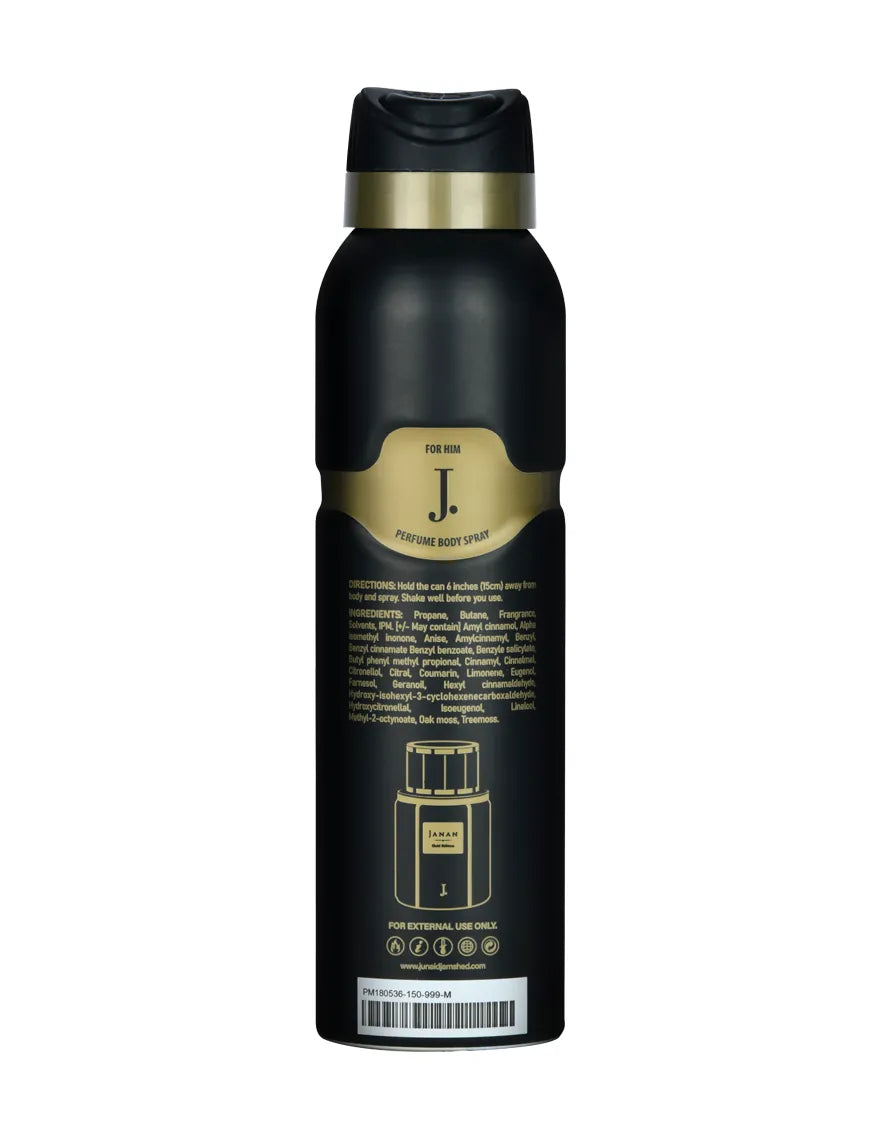 J. Junaid Jamshed Body Spray Janan Gold blends fresh woody bergamot notes with juicy hints of red apple and pineapple, layered over a complex heart of white florals, patchouli, leather, smokey, and oakmoss. This energizing fragrance in a convenient 150ml bottle is perfect for daily wear, leaving you feeling vibrant and self-assured wherever you go.