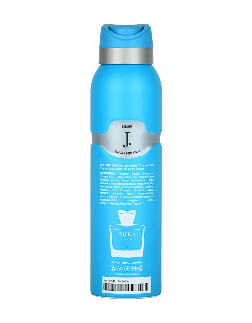 J. Junaid Jamshed Body Spray Mika features a unique blend of citrus, fresh green sea notes, tomato leaf, and patchouli, creating a refreshing, fruity marine fragrance. This 150ml body spray is perfect for daily use, leaving you feeling energized and revitalized with a crisp, clean scent that lasts all day.