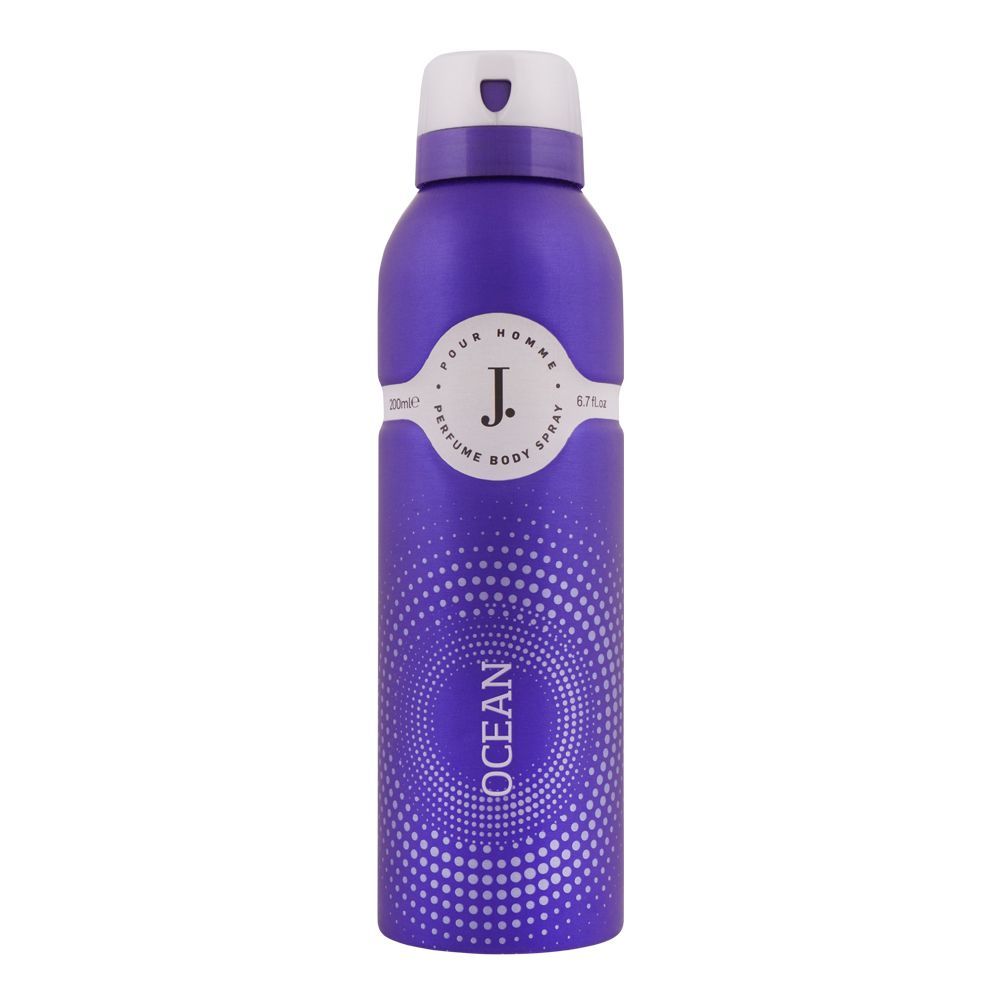 J. Junaid Jamshed Body Spray Ocean opens with invigorating citrusy and cool top notes of citrus blends, pepper, and mint. The heart reveals a spicy blend of violet leaves, nutmeg, and cedarwood, while the base grounds the scent with rich incense, patchouli, and leather notes. This fougere-aromatic fragrance is perfect for men who want a bold, fresh, and complex scent that lasts all day.