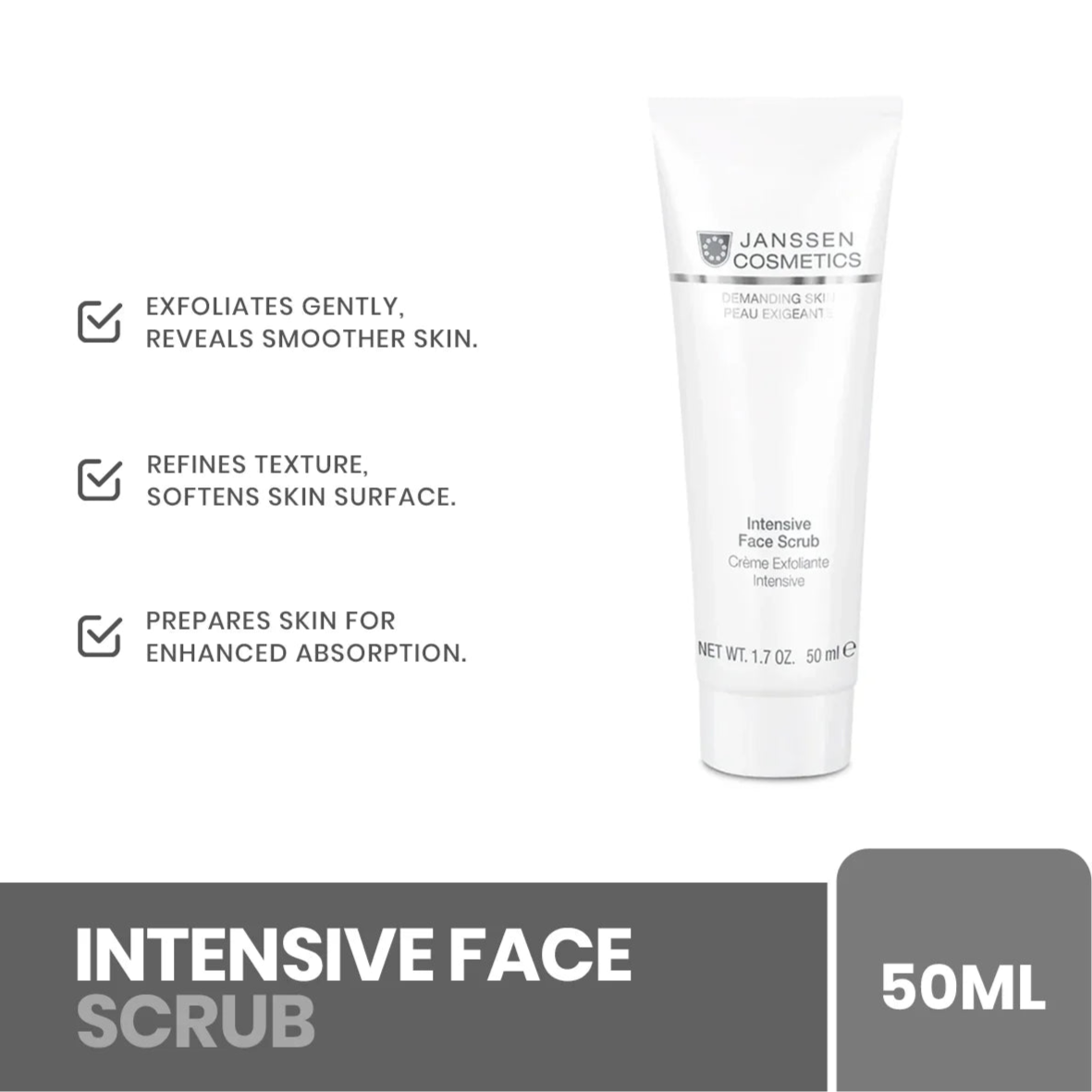 Achieve beautifully smooth and radiant skin with Janssen's Intensive Face Scrub. This cream peeling is specially formulated for demanding skin, with finely ground peach granules to gently exfoliate and remove dead skin cells. Use 1-2 times a week before applying other skincare products for best results. Don't forget to protect your skin with SPF after use.
