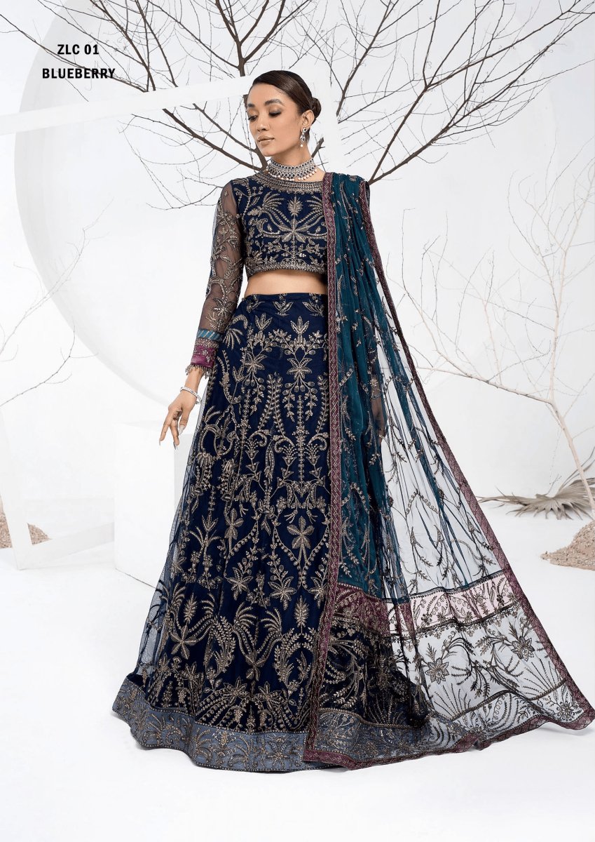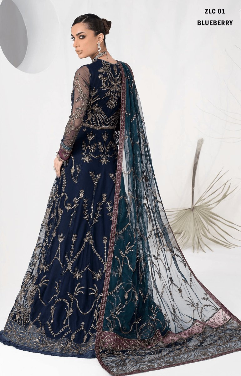 LA CELESTE By Zarif 3 Piece Unstitched Suits  ZLC 01 BLUEBERRY - Luxury Formals Collection