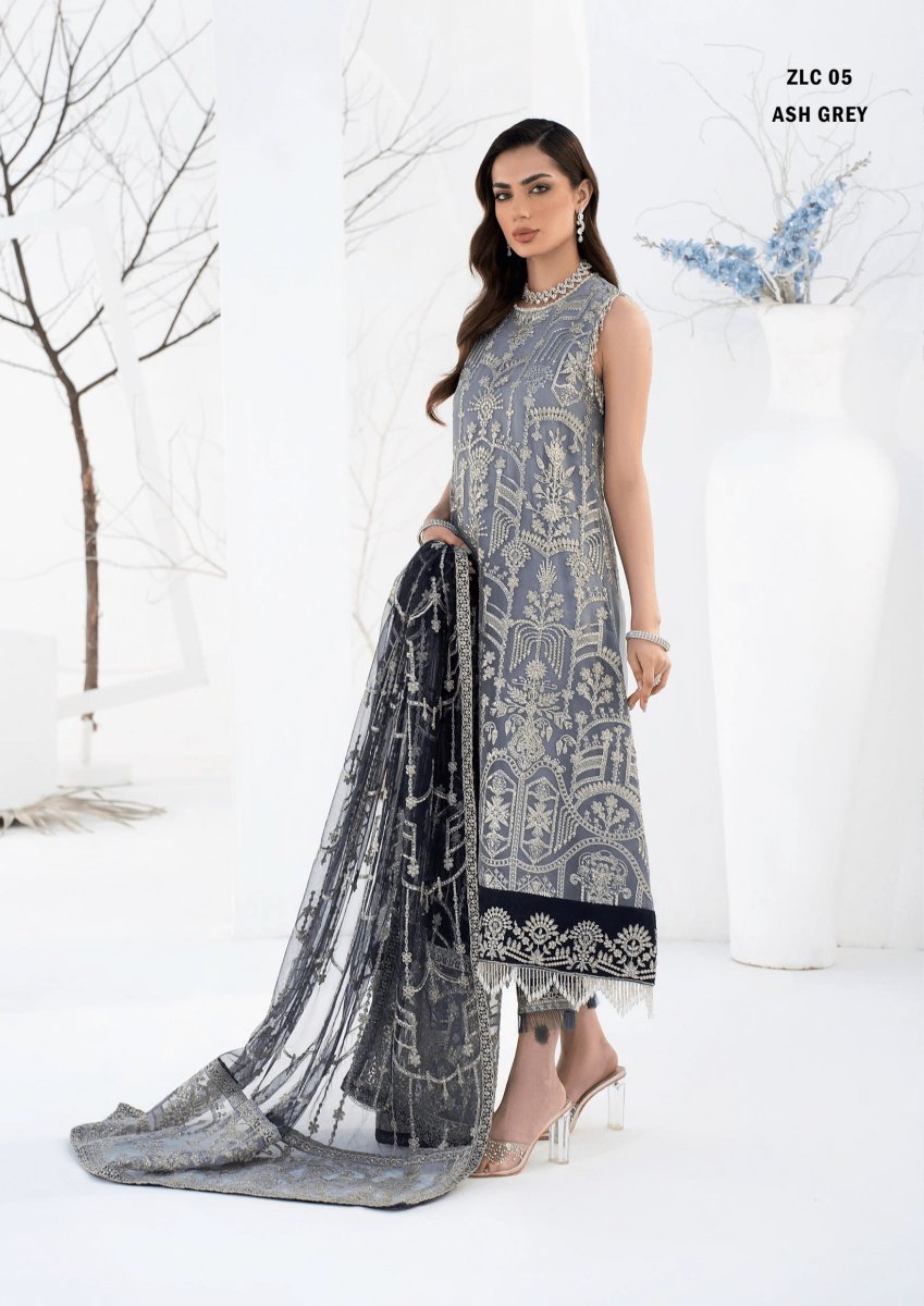 LA CELESTE By Zarif 3 Piece Unstitched Suits  ZLC 05 ASH GREY - Luxury Formals Collection