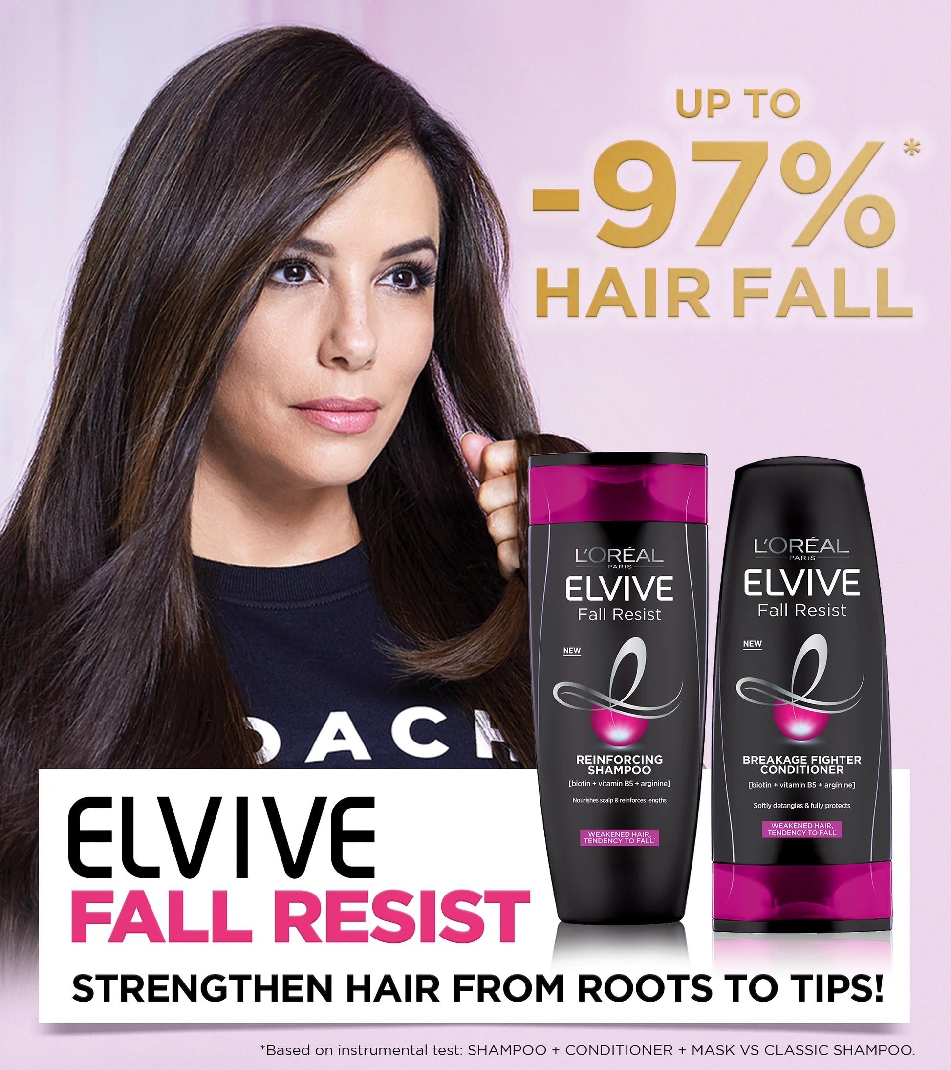 Strengthen and soften weak, brittle hair with L'Oreal Paris Elvive Fall Resist Reinforcing Conditioner. Infused with Biotin, Arginine, and Vitamin B5, this formula repairs and fortifies hair, leaving it feeling strong and resilient. Experience fearless hair with L'Oreal Paris!