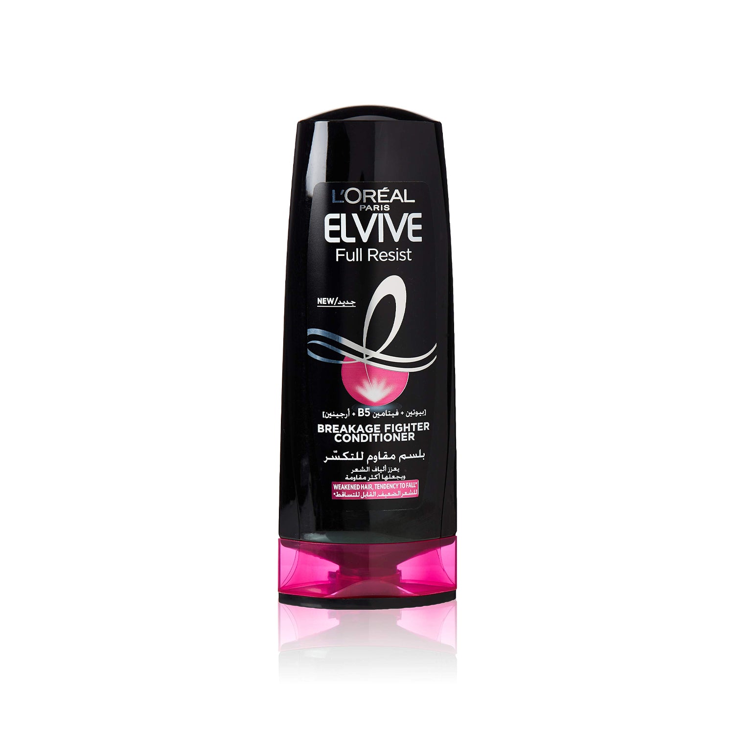 Loreal Paris Elvive Full Resist Conditioner strengthens and protects fragile hair prone to breakage. The formula, infused with Biotin, Vitamin B5, and Arginine, acts as a lightweight barrier in affinity with hair fibers, detangling and shielding hair from damage. Say goodbye to excessive hair breakage with this eco-friendly product made from 100% recycled plastic.