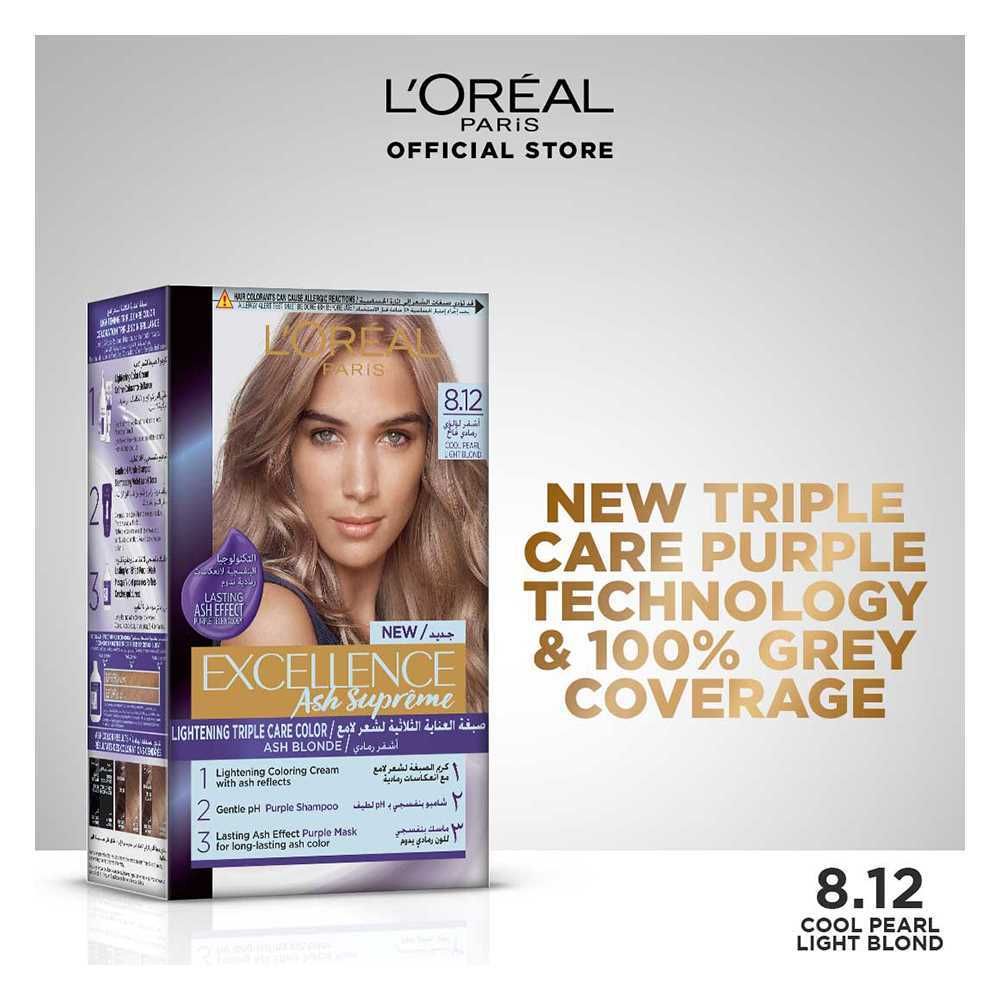 Achieve a cool, pearl light blonde shade with Loreal Paris' Excellence Ash Supreme Hair Color. Expertly crafted with ash tones, this hair color formula provides a professional and scientific approach to achieving beautifully toned hair. Say goodbye to brassiness and hello to a cool, natural-looking blonde.