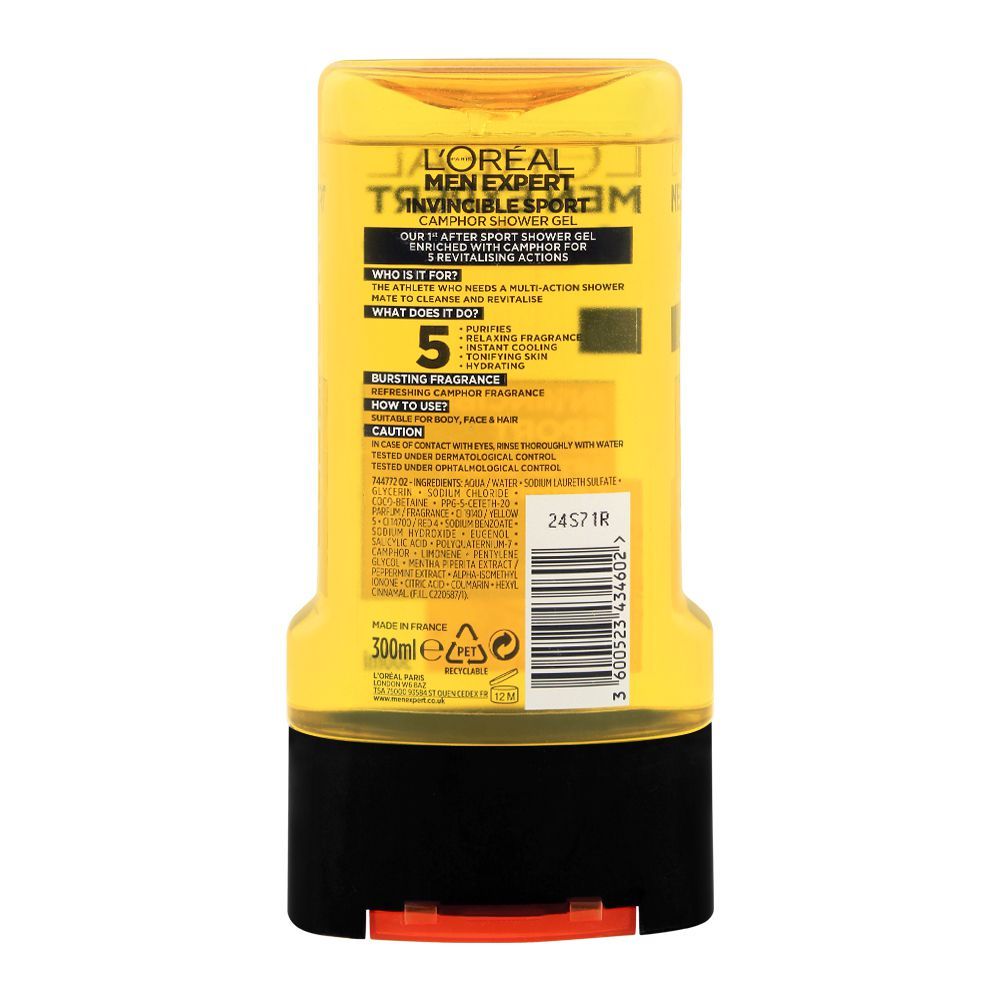 Experience a refreshing and invigorating shower with L'Oreal Paris Men Expert Invincible Sports 5-In-1 Body + Face + Hair Shower Gel. Formulated with camphor, this shower gel not only cleanses and protects your skin, but also gives a cool, revitalizing effect. Enjoy a spicy, aromatic fragrance while catering to your hair, face, and body washing needs.