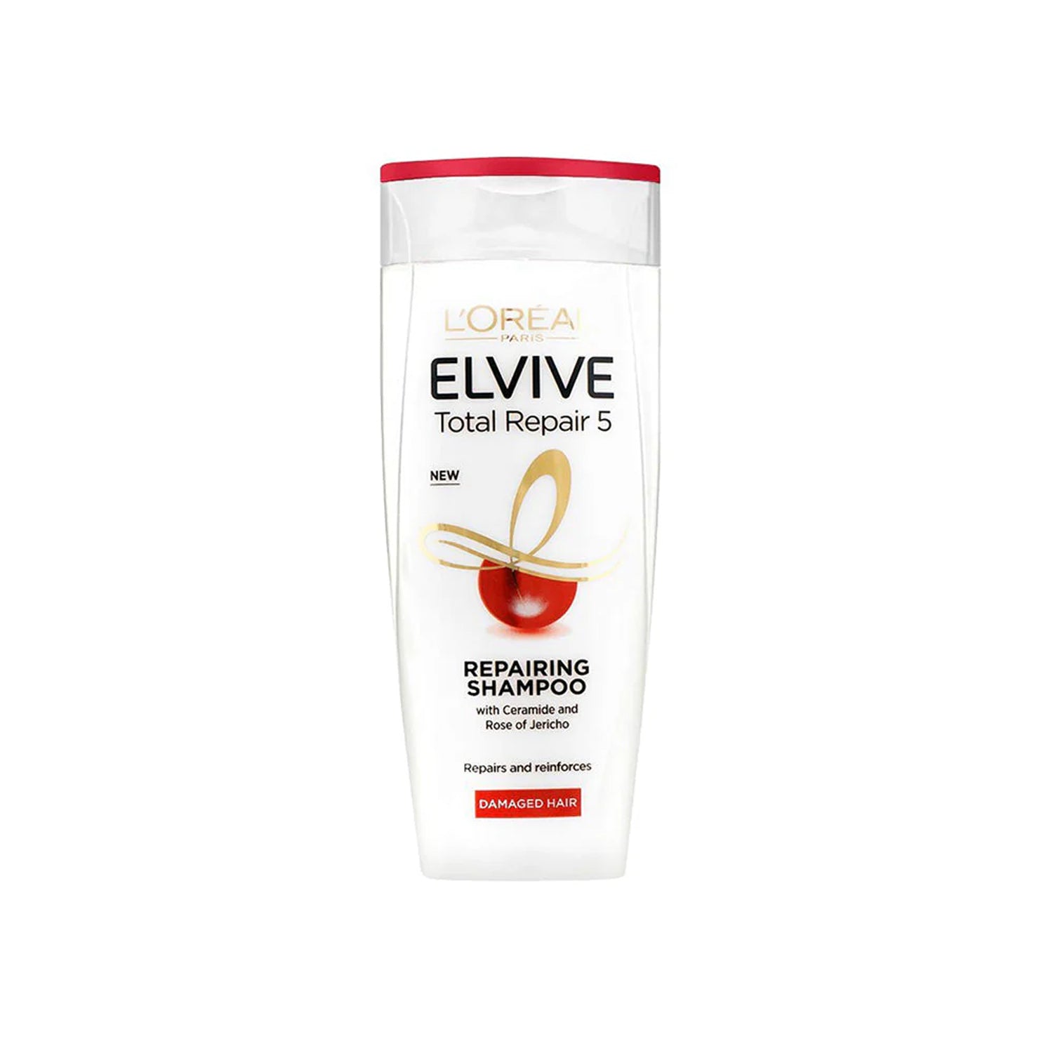Experience theultimate repair for damaged hair with Loreal Paris' Total Repair 5 Repairing Shampoo. Our scientifically formulated formula restores smoothness, nourishes hair, and eliminates frizz for a healthy shine. With proven results of strength, density, vitality, and silkiness, your hair will feel soft, touchable, and vibrant.