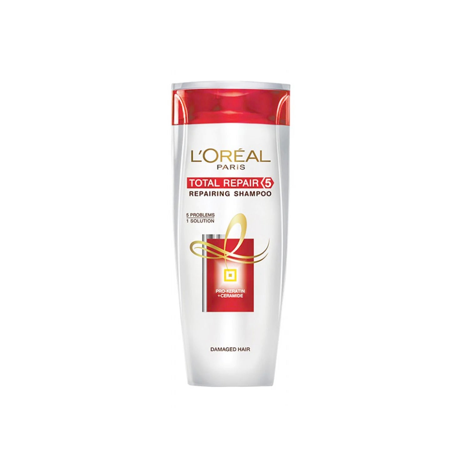 Transform your damaged hair with Loreal Total Repair 5 Shampoo. Our cicamide and pro-keratin formula repairs 5 signs of damage, leaving your hair soft, shiny, and strong. This deeply cleansing and nourishing shampoo also detangles for fuller-looking hair. Experience healthy, replenished hair with every use.