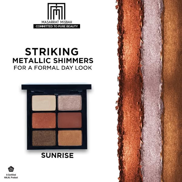 Achieve a stunning sunrise-inspired look with Masarrat Misbah's Eyeshadow Palette in SUNRISE. This palette features a range of highly pigmented colors that effortlessly blend, creating vibrant and long-lasting eye makeup. Elevate your look with this must-have palette.