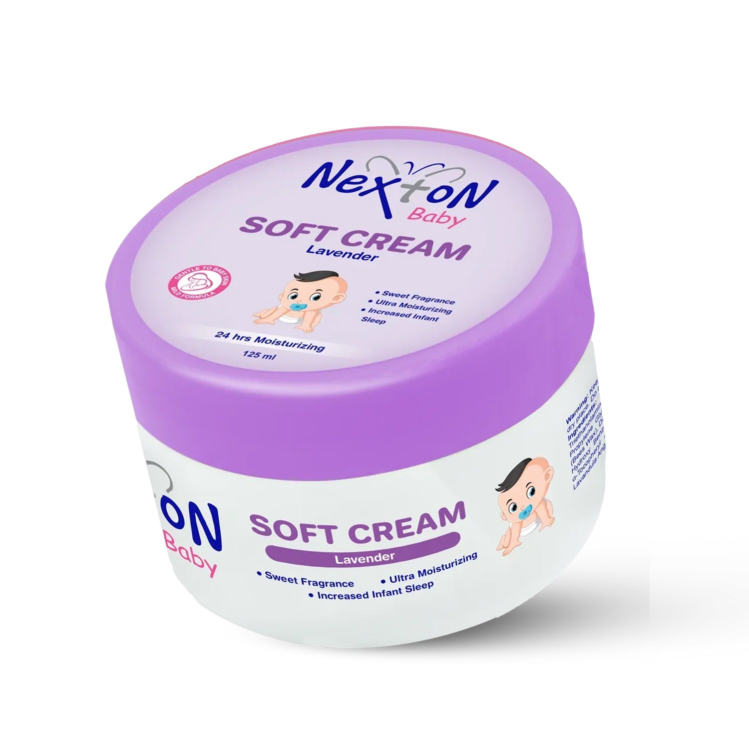 Indulge your little one with Nexton Baby Soft Cream Lavender. This luxurious cream nourishes and soothes with its moisturizing properties. Enriched with lavender, it not only keeps delicate skin hydrated, but also strengthens the skin barrier. Treat your baby to the best in skincare.
