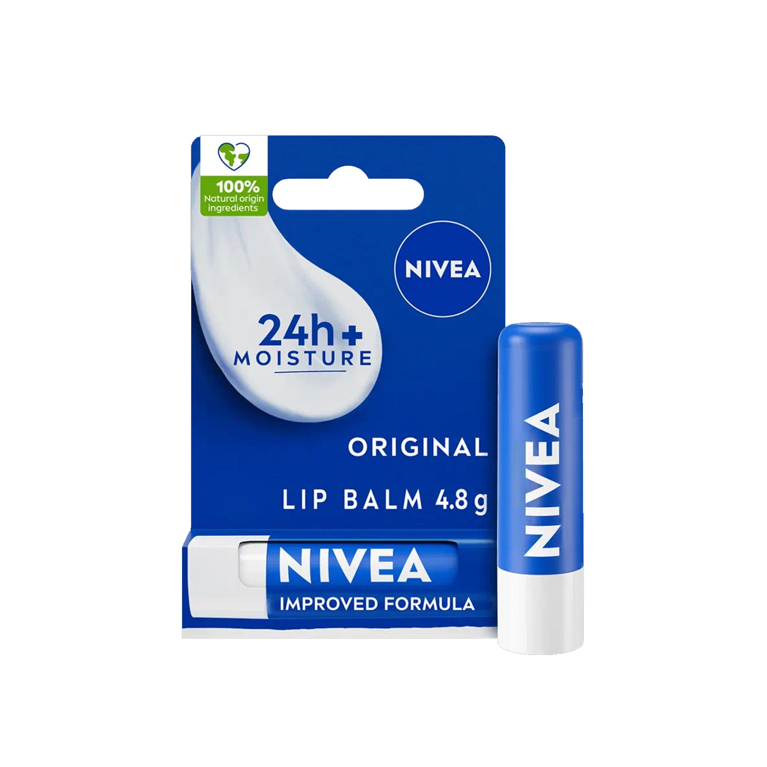NIVEA Original Care Lip Balm provides 24+ hours of deep hydration, enriched with 100% natural ingredients and ethically sourced Shea Butter. This formula melts instantly into lips, leaving them smooth, supple, and healthy-looking. Free from vitamins and mineral oils, it delivers natural softness for kissable lips all day long.