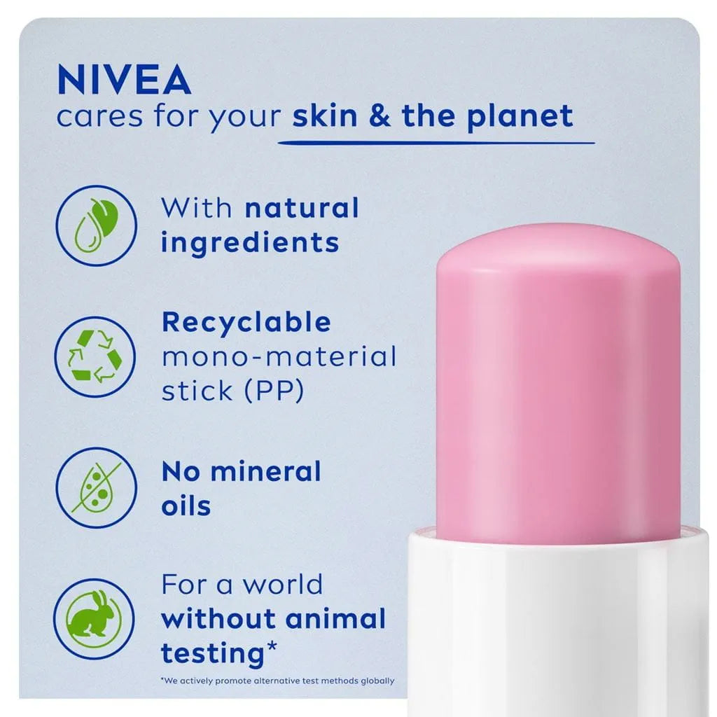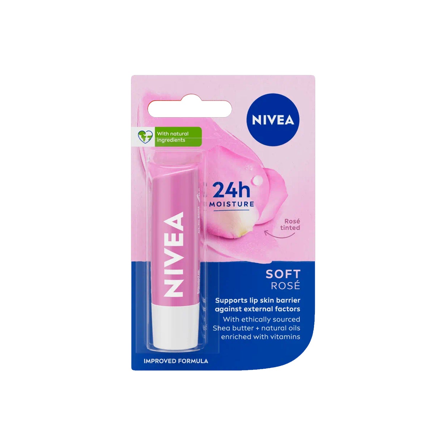 NIVEA Soft Rose Lip Balm offers long-lasting moisture for soft, smooth lips. This 4.8g balm is enriched with natural oils and a delicate rose fragrance, leaving a subtle rose tint for a naturally beautiful look. Its caring formula glides on smoothly, providing instant hydration and a soft finish.