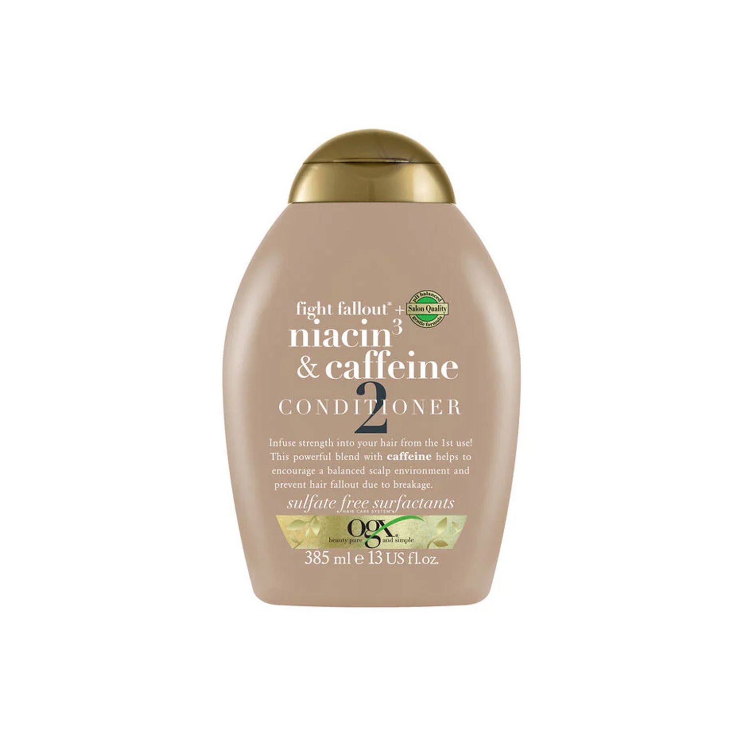 Worried about hair fallout and visibly thinning strands? Fight breakage and unlock stronger, healthier hair with OGX Niacin & Caffeine Conditioner! This advanced, sulfate-free formula is specifically designed to support your hair from root to tip. Infused with invigorating niacin, stimulating caffeine, alpha hydroxy acid, and a natural DHT blocker, it actively stimulates the scalp and dramatically improves strand strength to reduce future fallout.