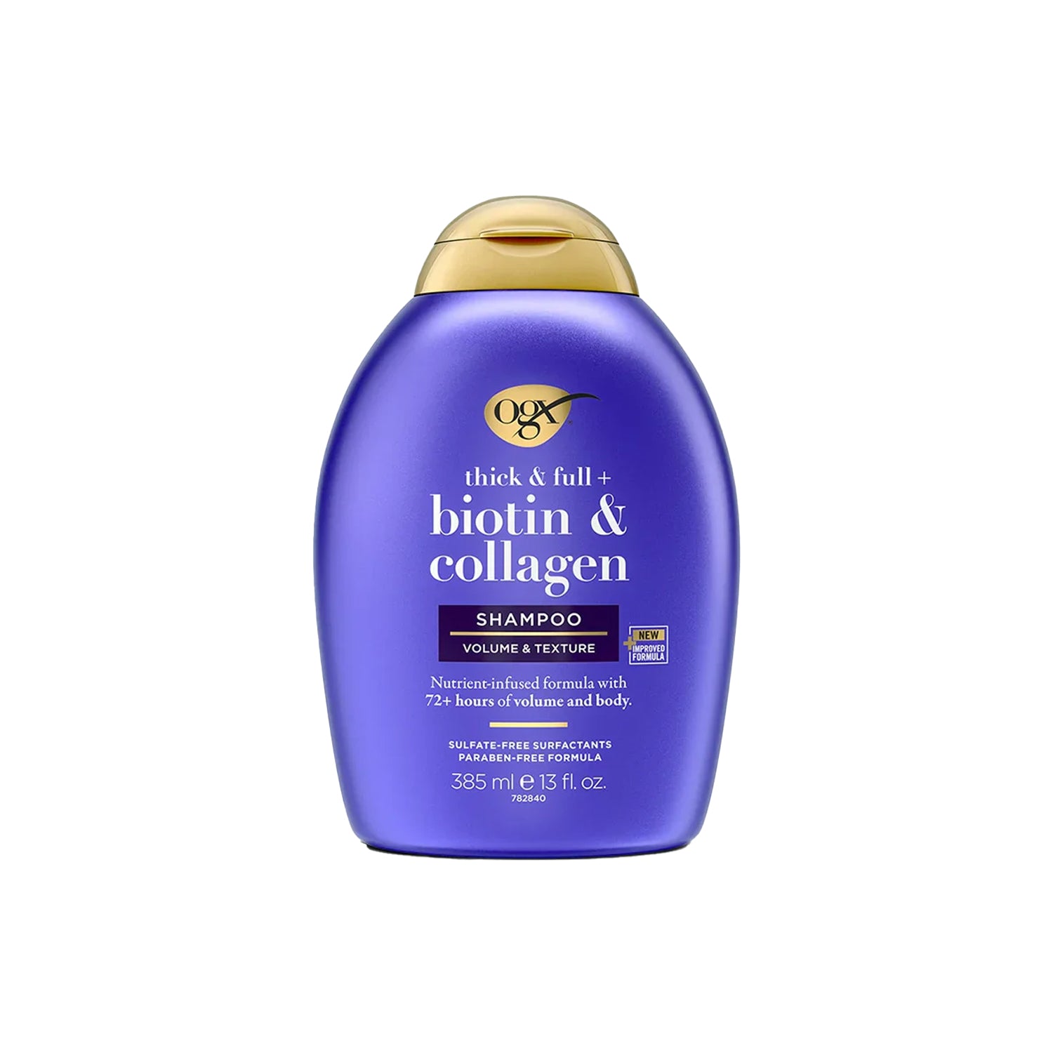 Want visibly thicker, fuller hair with incredible, lasting volume? Unlock luxurious body with OGX Thick & Full Biotin & Collagen Shampoo! This powerful, sulfate-free formula is infused with a powerhouse blend of biotin, collagen, and wheat protein to deeply strengthen strands and deliver an impressive 72+ hours of amplified volume and body.