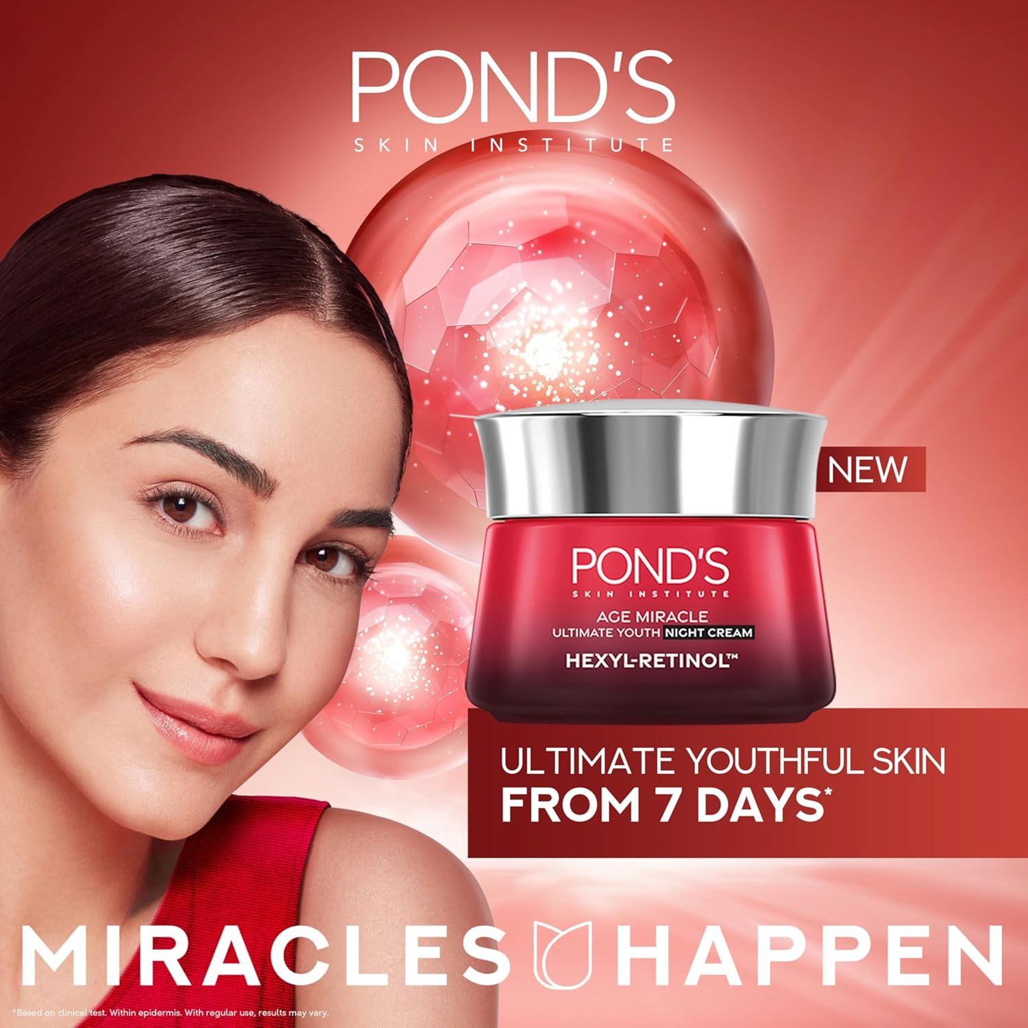 Seeing wrinkles and fine lines in the mirror? Pond’s Age Miracle Night Cream with Retinol-C Complex delivers 24-hour anti-aging action, reducing lines, improving elasticity, and restoring firmness overnight. This dermatologist-tested formula boosts skin texture and radiance while you sleep. Perfect for mature skin, it reveals visibly smoother, younger-looking skin every morning. Make it your go-to night cream for age-defying results and lasting glow.