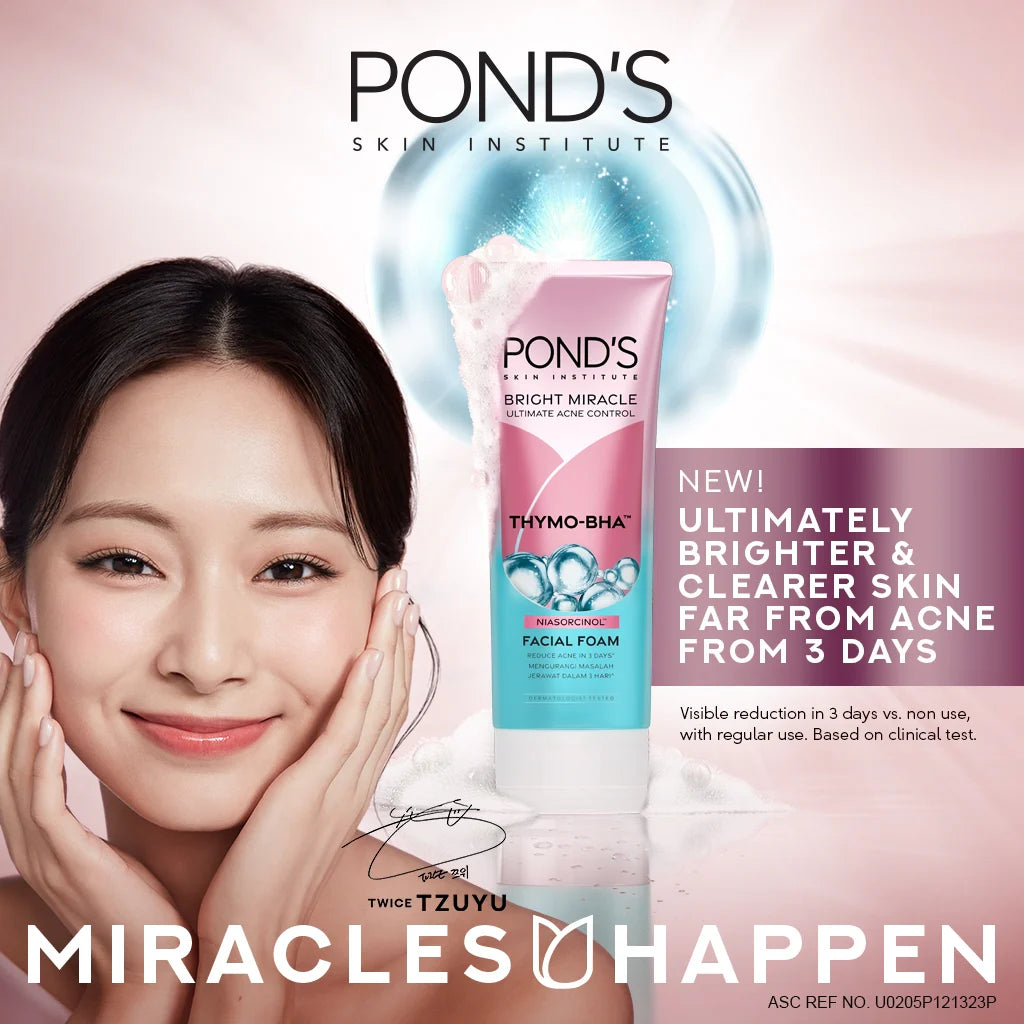 Achieve clearer, brighter skin with Pond’s Bright Miracle Ultimate Acne Solution THYMO-BHA Facial Foam. Clinically proven THYMO-BHA and NIASCORCINOL™ ingredients work together to fight acne-causing bacteria while providing 10X brighter skin. In just 3 days, this powerful formula helps reduce acne and reveals a healthier, glowing complexion. Daily use delivers the ultimate miracle for flawless, radiant skin.