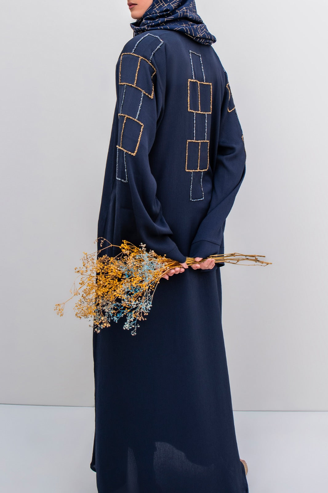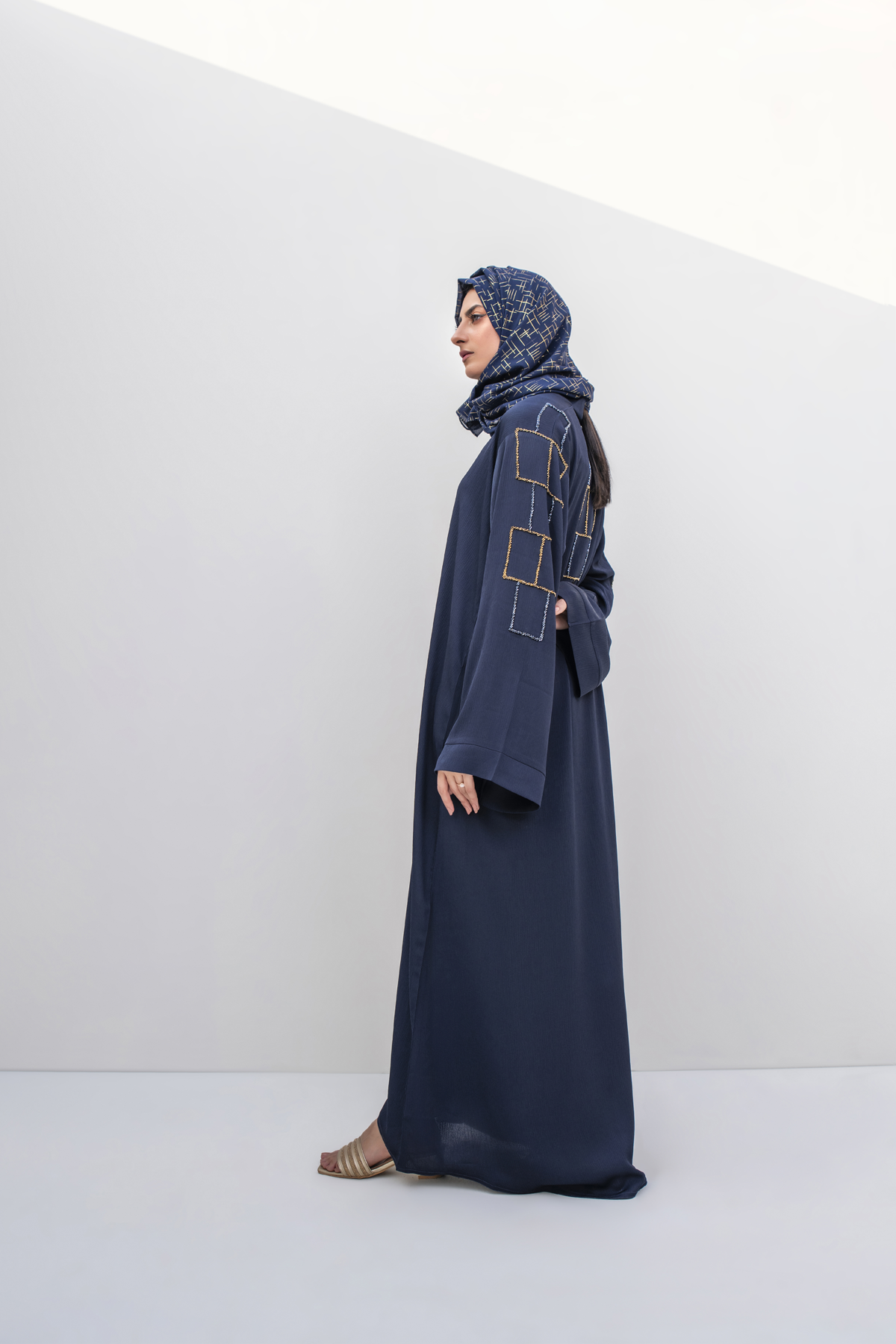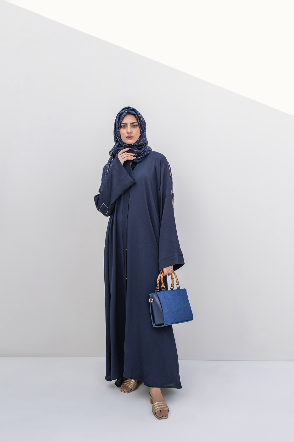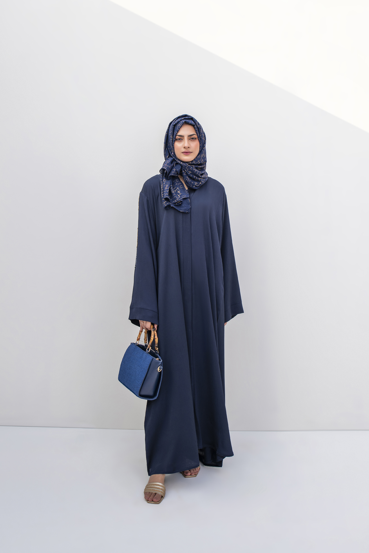 Royal Oak is a beautiful Abaya in shades royal blue specifically for women who wants to leave a impression. It's thoughtfully designed with Plus size Stone work throughout back and keeping the front simple and sober which that hugely complements it giving a very premium look to maintain its elegant fall. This is a very elegant abaya made with modern taste.