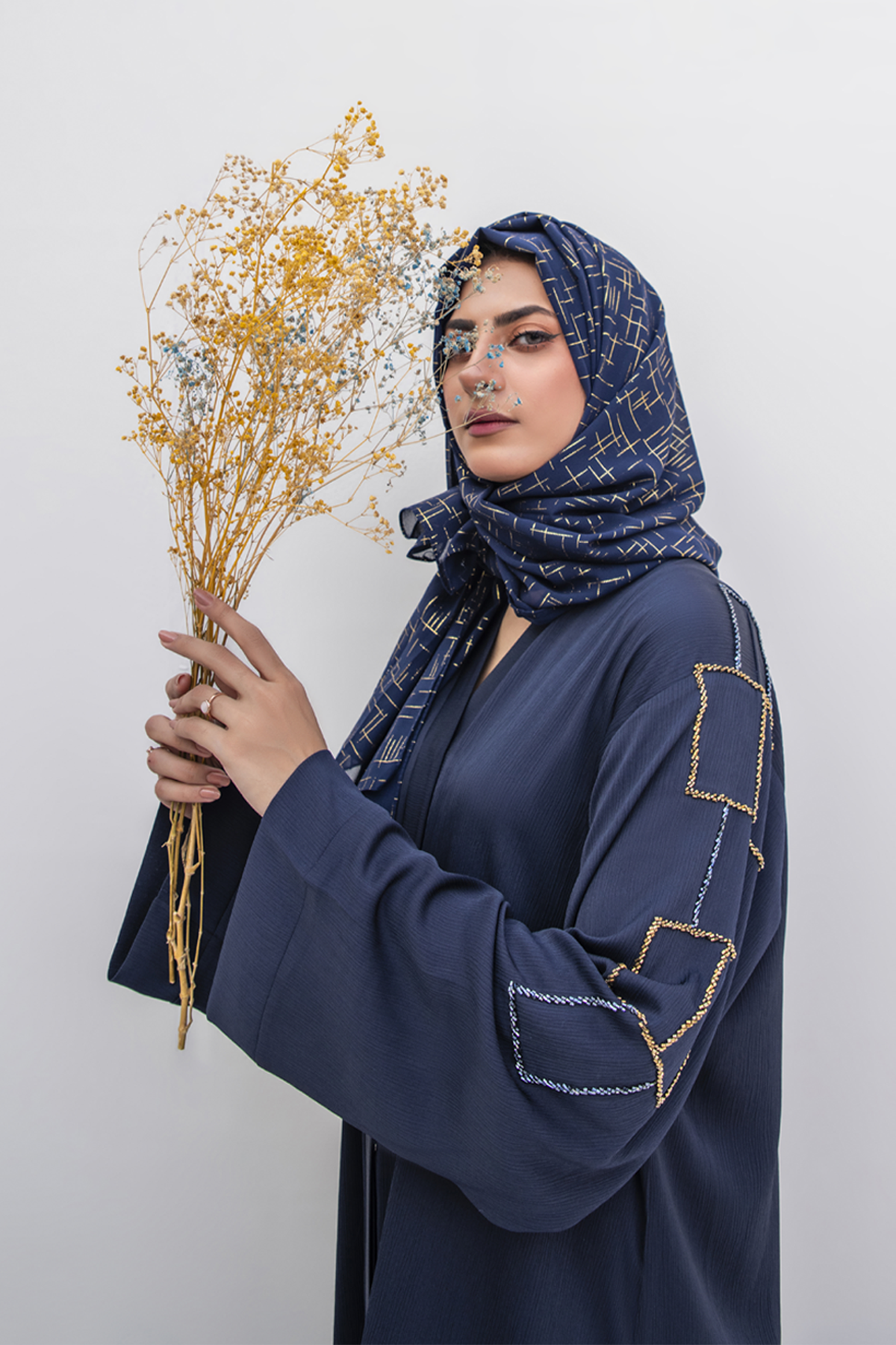 This Abaya is an ideal pick for evening-outs and special events. This Abaya has a flawless look with its golden check hijab in complementing the shades.