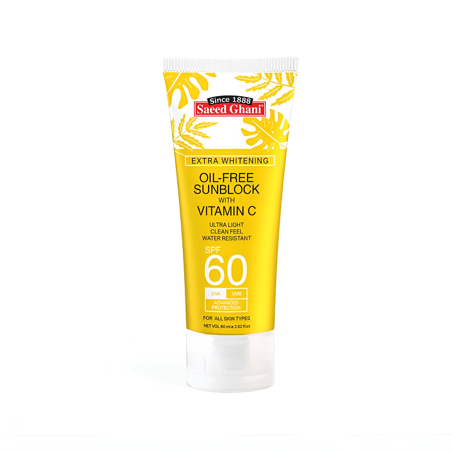 Saeed Ghani SPF 60 Oil-Free Sunblock with vitamin C, is a unique formula, loaded with Vitamin C, E, and many other essential ingredients, that help repair skin & combat UV rays and sunburns. Its lightweight, non-greasy texture absorbs quickly, gives a natural finish without a white cast, and locks in hydration, keeping the skin moisturized for lasting impact. Ideal for all skin types.