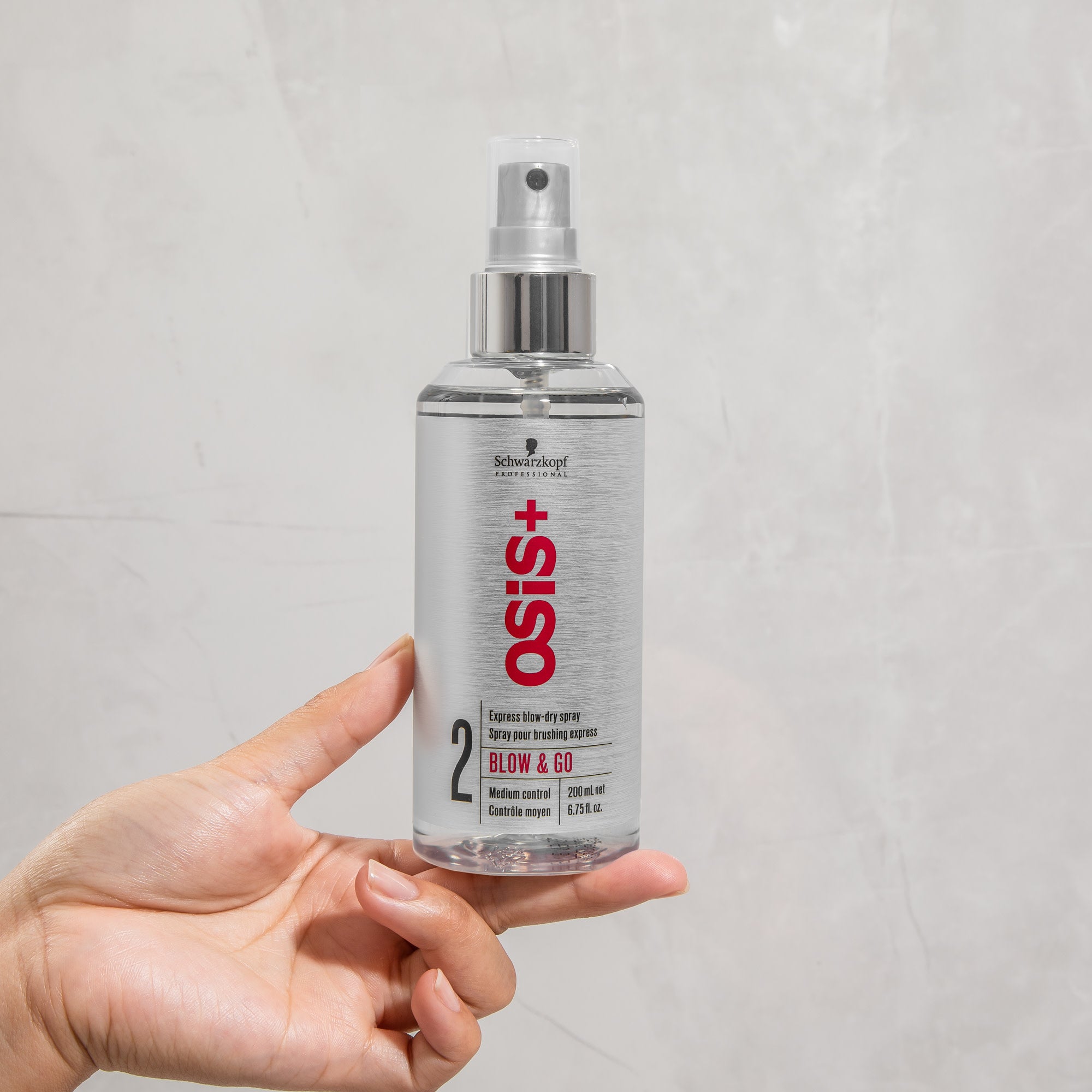 Experience faster and easier blow-drying with Schwarzkopf's OSiS+ Blow & Go Express Blow-Dry Spray. This innovative formula provides an anti-frizz effect and blow-dry heat protection, giving you sleek, smooth styles with luxurious shine. The combination of silicones and film formers ensures long-lasting results and improved frizz and style control. Perfect for rapid salon services.